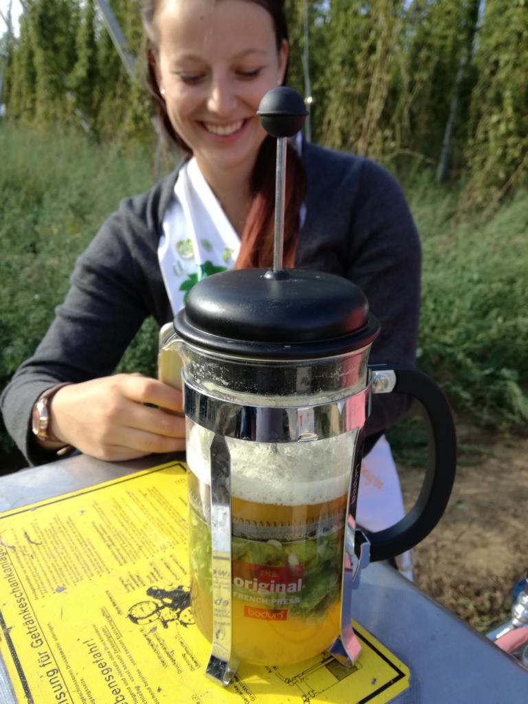 Unterwegs werden die unterschiedlichen Hopfensorten direkt und als „ fresh hops“ im Bier