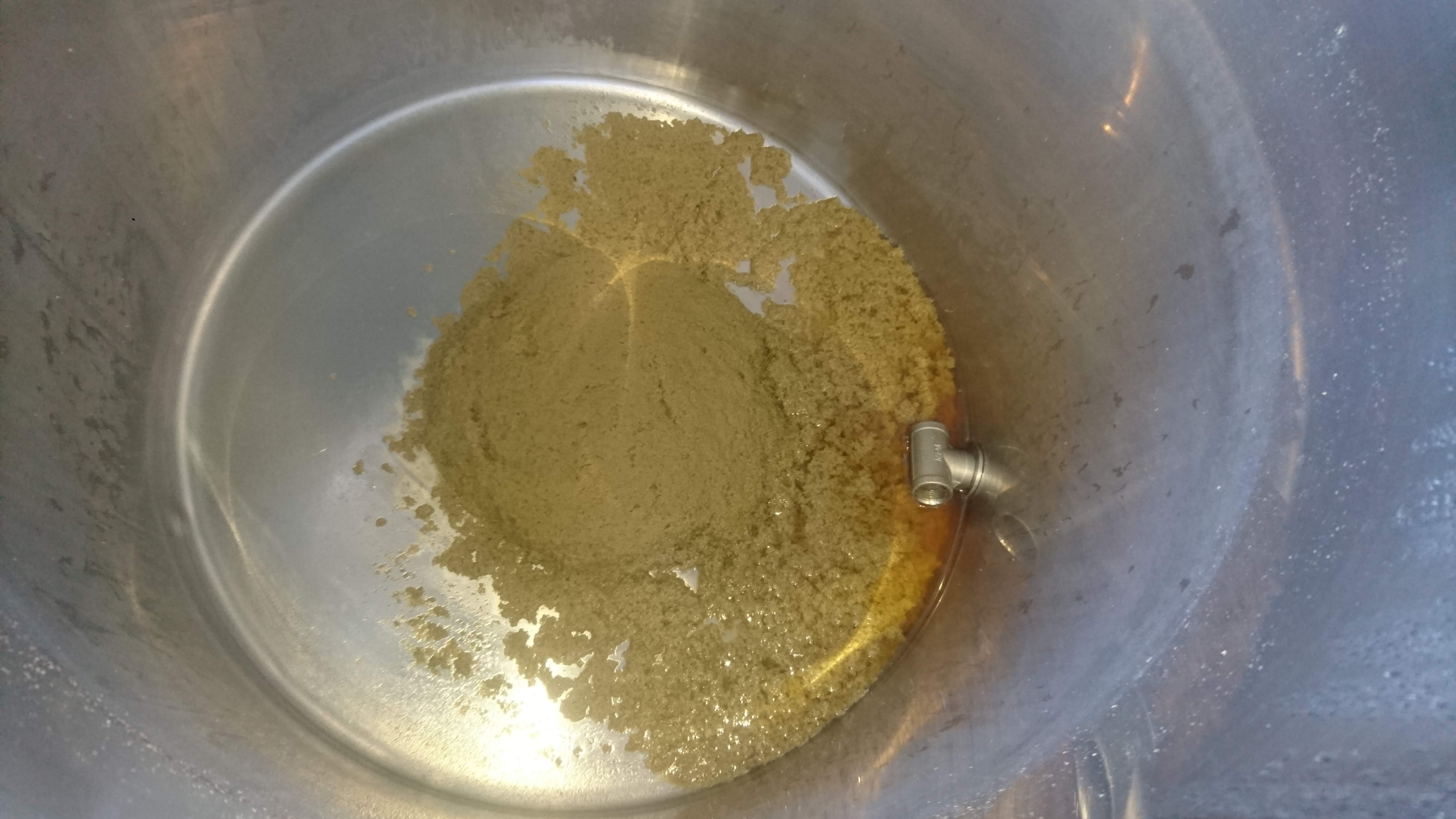 Von Trubkegel keine Spur, alles einheitliche Suppe am Topfboden. Gehopft wurden ca 150-170g Pellets, was normalerweise aber kein Problem darstellt. Die letzten Brautage sind wir prima mit dem 1.5L Monofilament Beutelchen ausgekommen, bei gleicher Hopfenmenge).