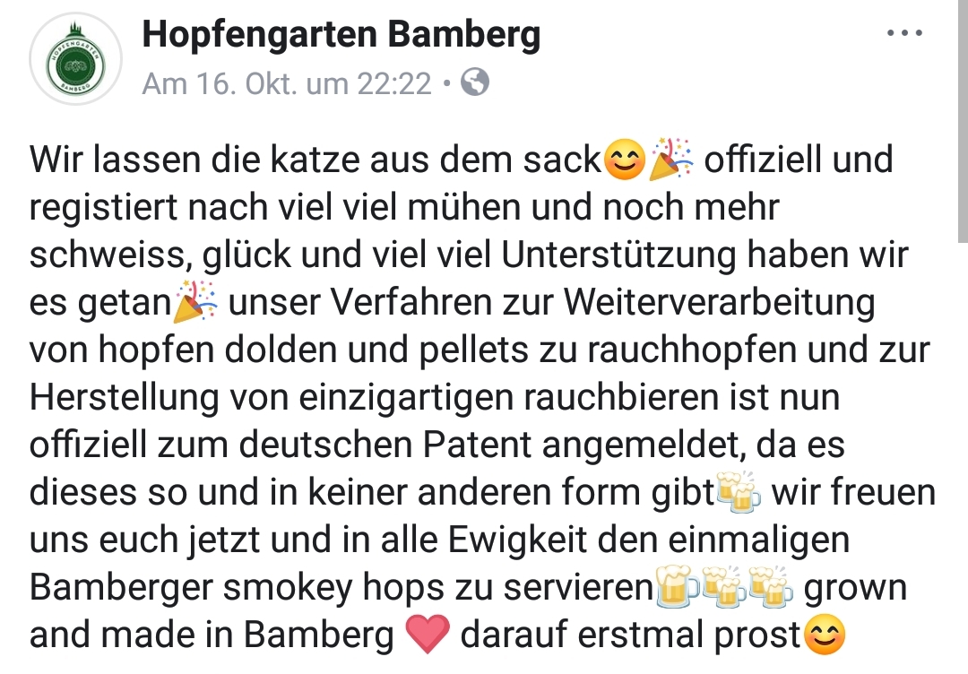 Re: Hopfengarten Bamberg: Patent auf Rauchhopfen