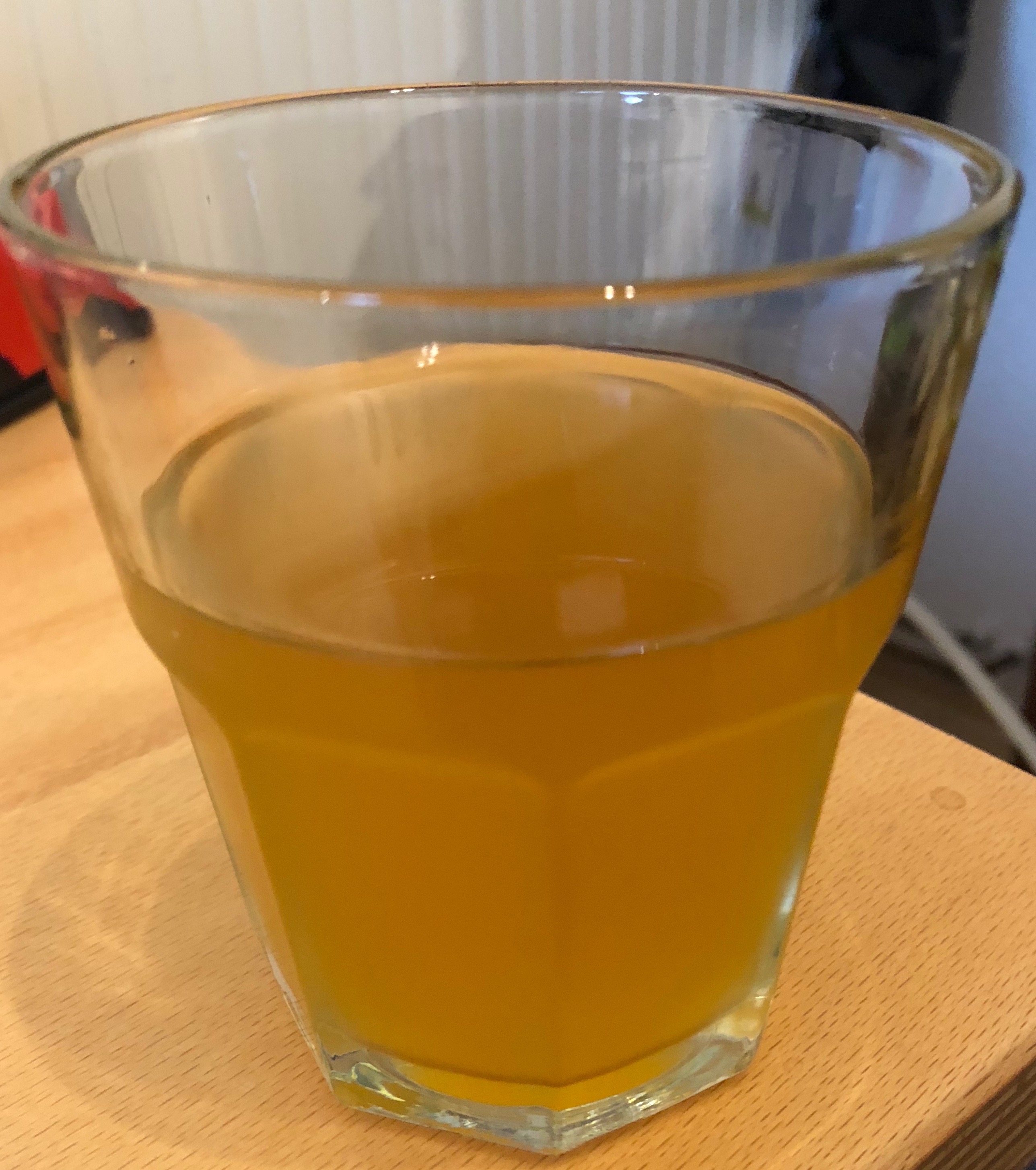 Farbe gefällt mir gut. Schmeckt auch Jung schon. Kernig, im Körper dennoch etwas dünn, was wahrscheinlich daran liegt dass ich mit der StW etwas zu tief gekommen bin (Hab zu spät aufgehört anzuschwänzen).