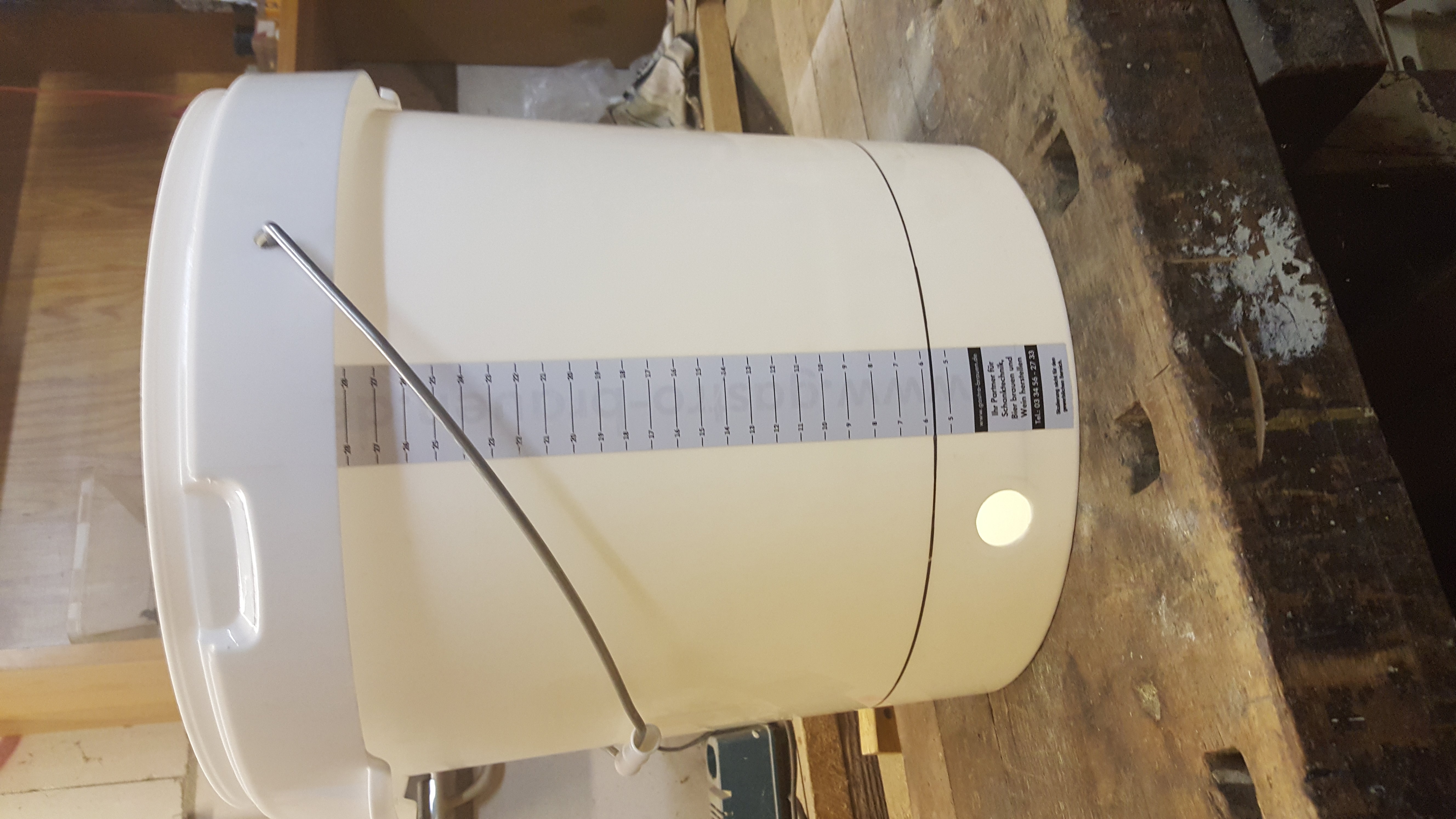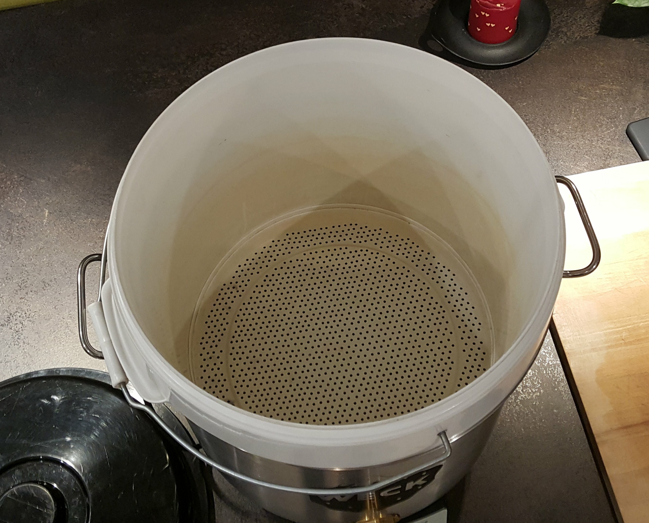 hier eine kleine Baudokumentation von einem Läutereinsatz bzw. Malzrohr, das ich heute aus einem Gäreimer gebaut habe. Der Eimer stammt aus dem Starterpaket von gastro-brauen - mein Einstieg in die Welt des Bierbrauens - und hat schon so einige Sude hinter sich. Er hat ober eine recht hohe "Krempe", so dass unten weniger abgeschnitten werden muss. Der Einkocher ist ca. 30cm hoch. Da der Auslauf noch drunter passen muss, sollte der Einsatz nicht mehr als 25cm in den Topf ragen.