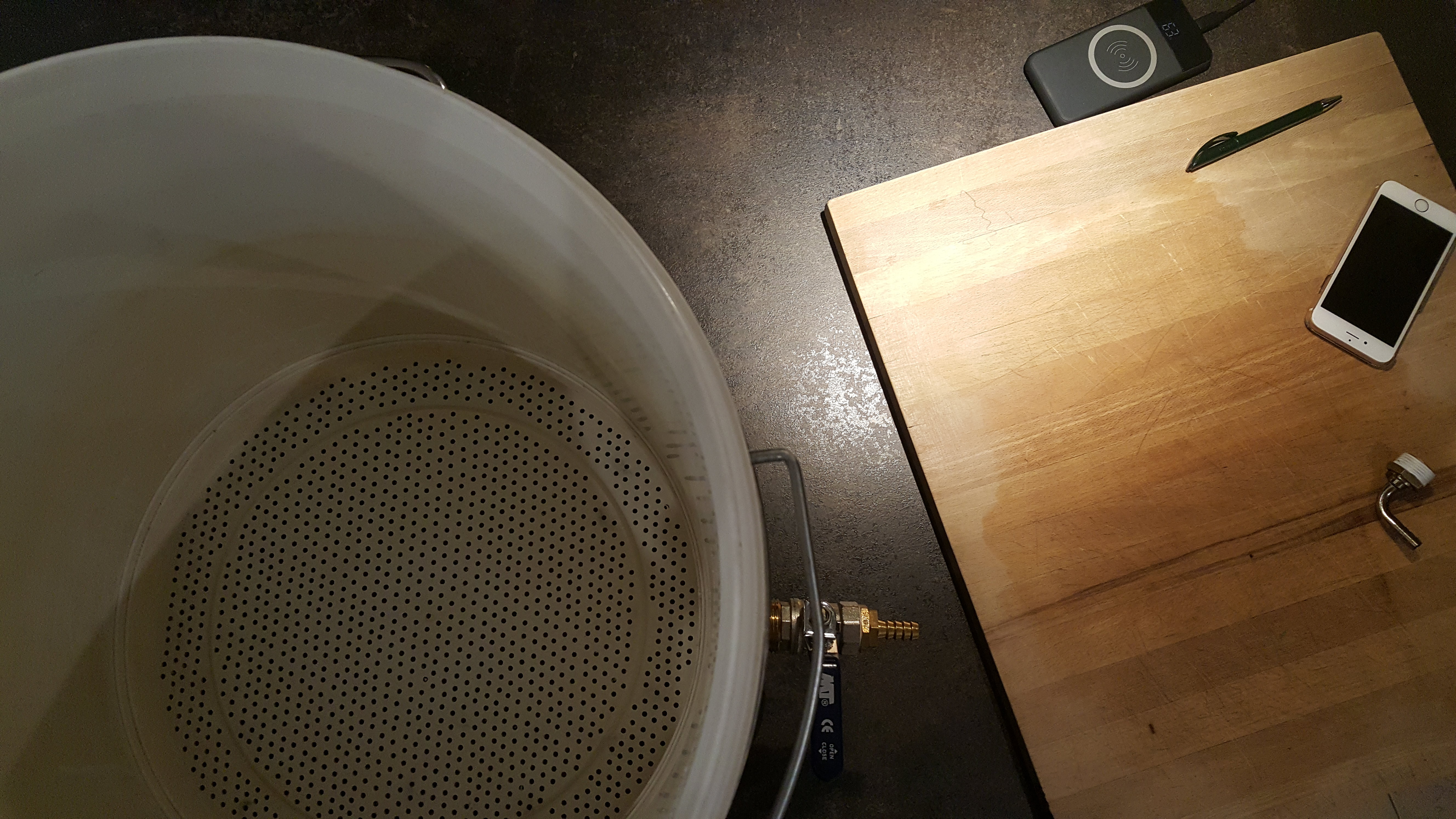 Die Würze soll ähnlich wie beim Grainfather mit einer Pumpe über den Ablasshahn abgesaugt und oben in den Einsatz gegeben werden. Hierzu fehlen auch noch entsprechende Überlaufbohrungen im Einsatz, falls sich der Filter zusetzt.
