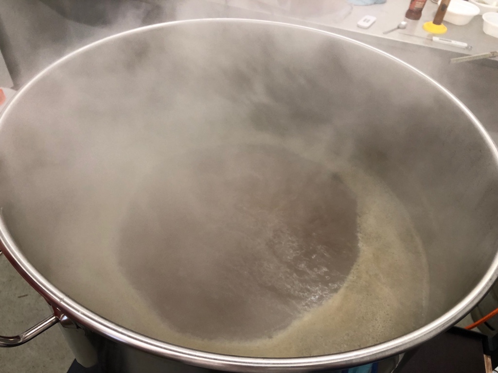 25 Liter Dickmaische erhitzen auf 70 Grad, 10 Minuten Rast