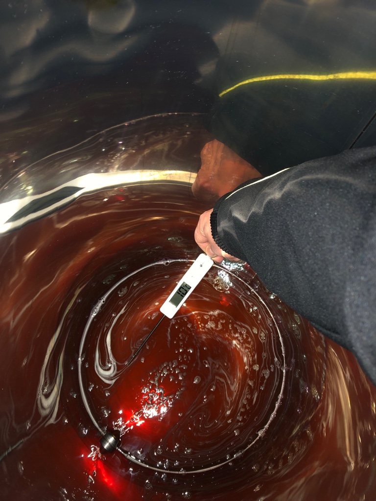 Würze läuft ins Gärfass, Temperatur: ca. 10 Grad