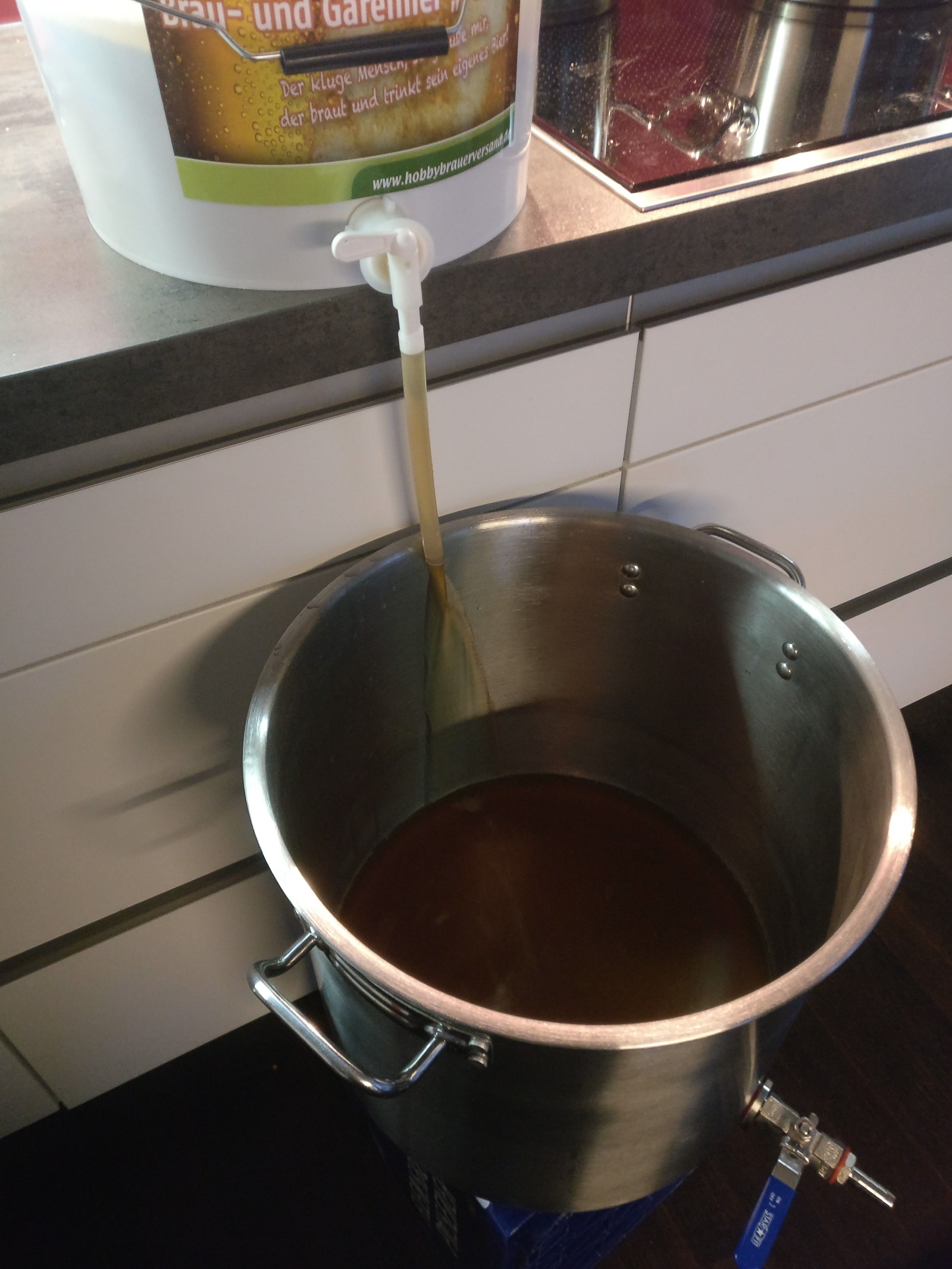 Ich hatte schon letztes Wochenende einen ersten Versuch gestartet, bin aber an einem tropfenden Hahn im Braukessel gescheitert. Mit neuem Hahn (und neuen Problemen) ging es gestern weiter.
