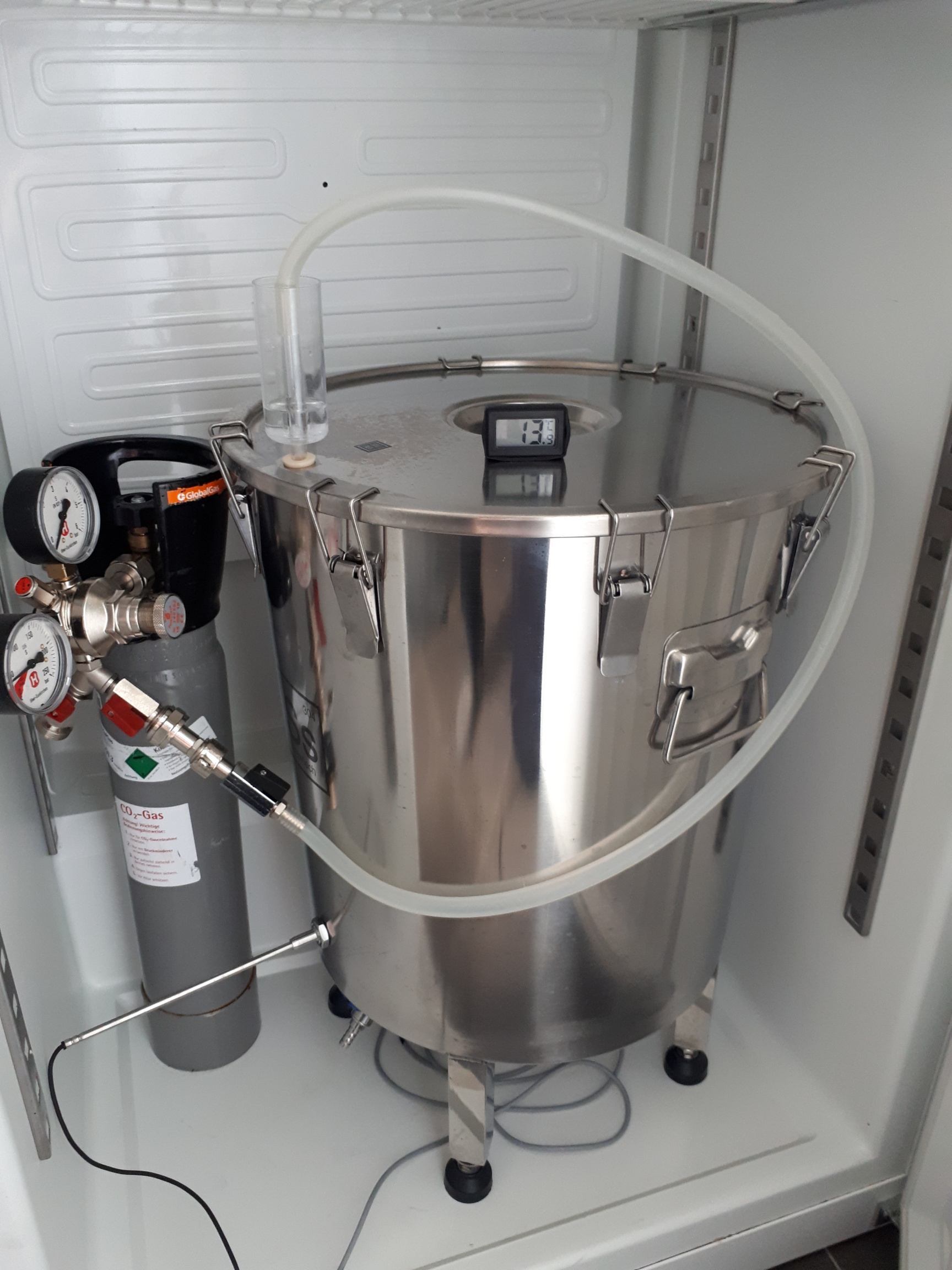 Hier bin ich aber verstärkt auf ein Problem gestoßen, weil der Fluss nach einiger Zeit einfach gestoppt hat. Auch davor ist es extrem langsam gelaufen. Das Gärfass steht dabei deutlich über dem Keg, aber anscheinend reicht die Schwerkraft nicht aus. Hab dann sogar komplett aufgegeben und den Deckel aufgemacht und so per Schlauch angefüllt.