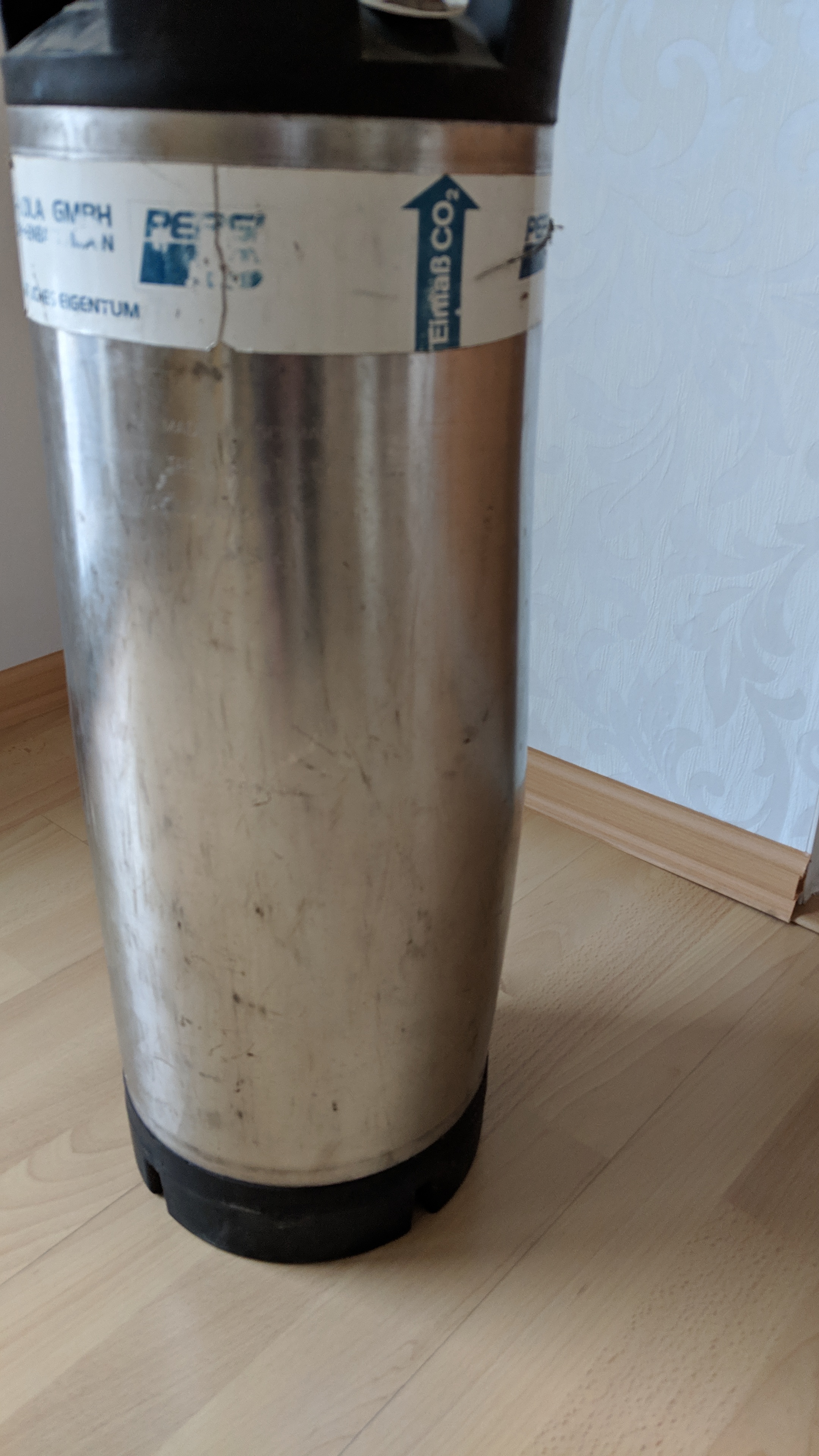 Zustand an sich gut, keine Dellen, gefüllt ehemals mit Soda Wasser, bisschen eingestaubt.