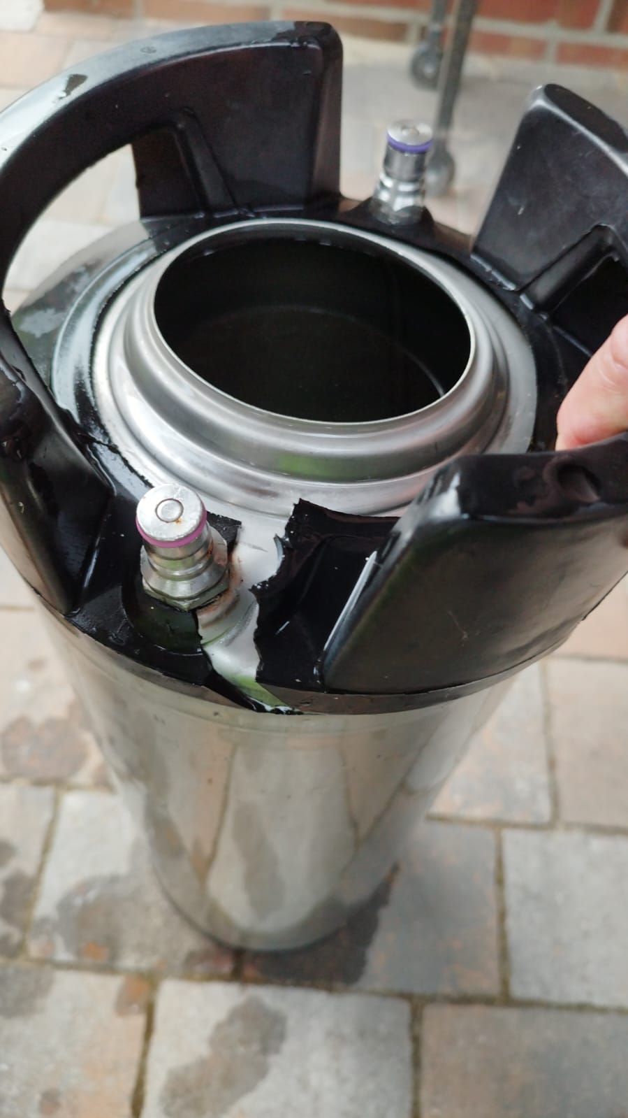 Dass das Keg mal eingefroren ist scheint mir bei dem Schadenbild am Wahrscheinlichsten, daran hatte ich nicht gedacht.
