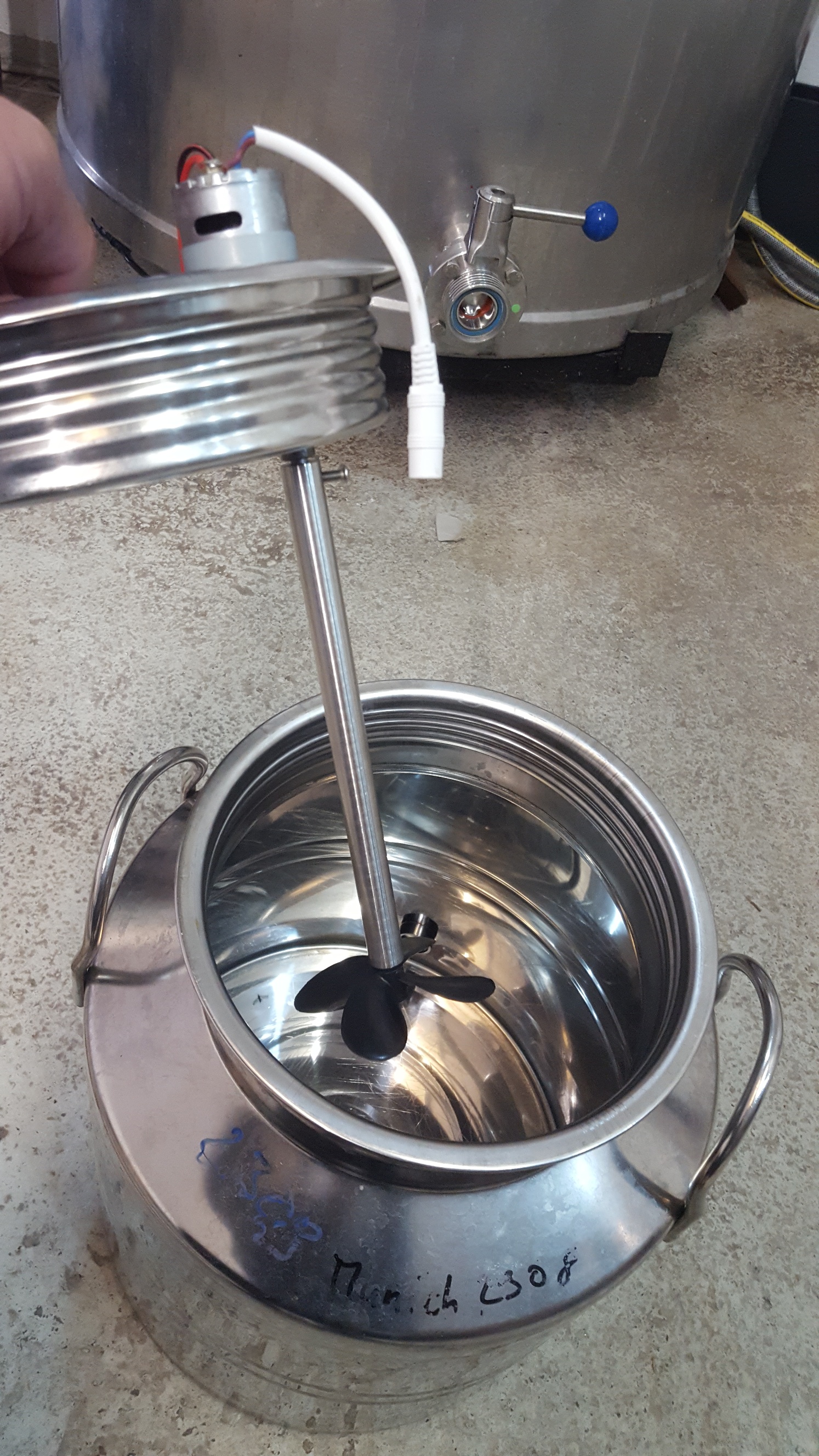 Mein Versuch in einem kleinen Speidel 12 Liter auf einem geliehenen Magnetrührer den Fisch zum Tanzen zu bringen scheiterten am gewölbten Boden des Gärbottichs.