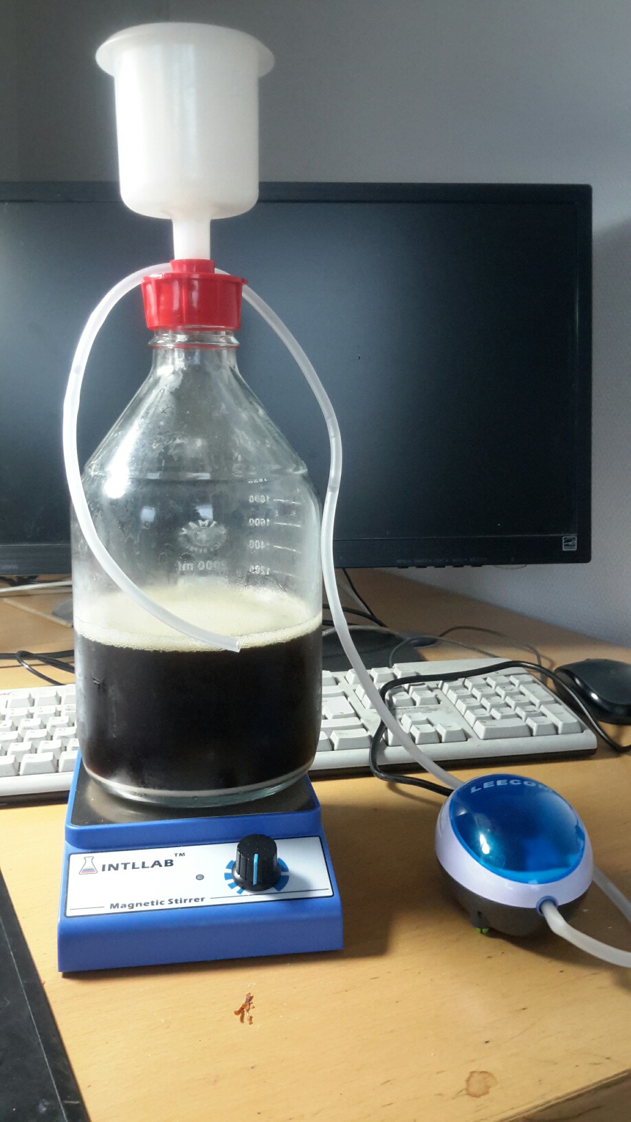 Schöne Idee mit dem Gärspund. Rührer und Belüftung finde ich ein bisschen Overkill. Eins von beiden reicht eigentlich. Aber jeder so wie er mag.