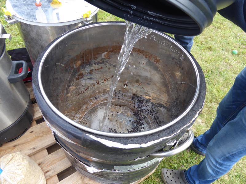 Und noch was zum Zeitmanagement: Die Aufheizzeiten sind gegenüber Elektro oder Gas sensationell kurz. Wenn man will in 60 Sekunden von 0 auf 100. Aber ... die beim Maischen und Kochen eingesparte Zeit hat man im Vorfeld zum Aufheizen der Steine auch schon aufgewandt. Insgesamt also eher ein Nullsummenspiel.