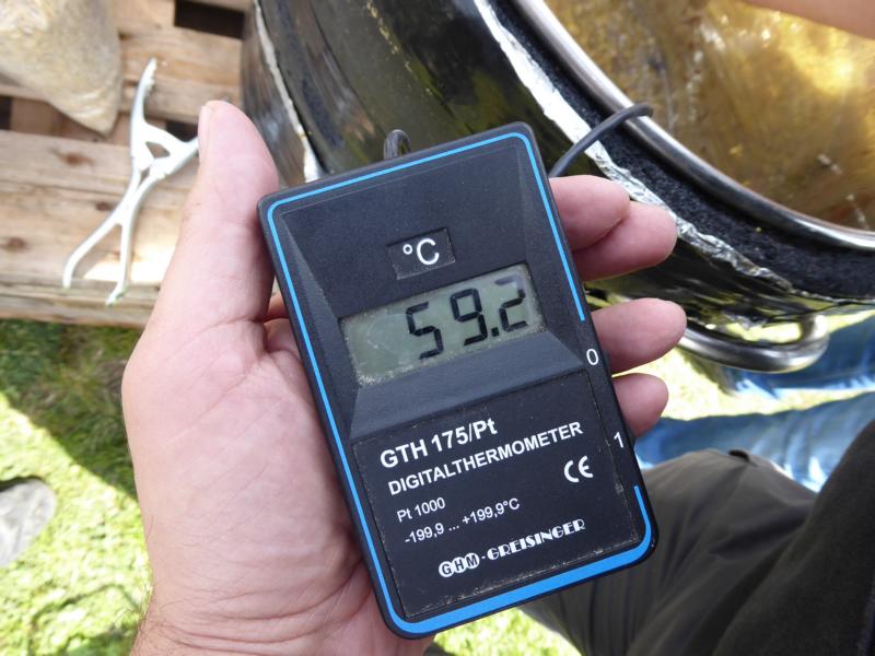 Und noch was zum Zeitmanagement: Die Aufheizzeiten sind gegenüber Elektro oder Gas sensationell kurz. Wenn man will in 60 Sekunden von 0 auf 100. Aber ... die beim Maischen und Kochen eingesparte Zeit hat man im Vorfeld zum Aufheizen der Steine auch schon aufgewandt. Insgesamt also eher ein Nullsummenspiel.
