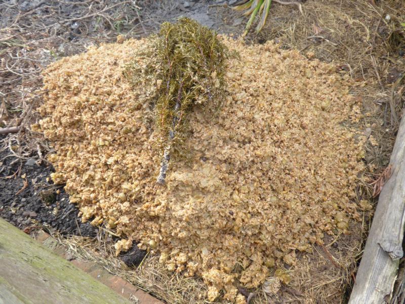 - Stillleben auf Kompost mit Treber und Wacholderzweig.