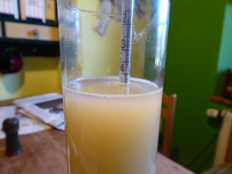 Ich hab mal eine Probe genommen. Restextrakt knapp über 4° (meine Spindel zeigt 0,2 zu viel an). Da bin ich ja mal gespannt, ob da noch was passiert. Im Braumagazin war ein sehr hoher Vergärungsgrad beschrieben.
