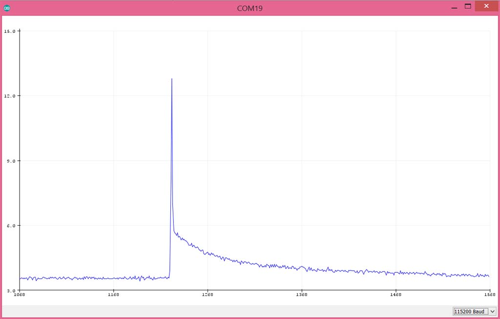Im Datenblatt wird ein Messbereich von 200-10000ppm LPG angegeben. Nach einem ersten Testlauf ergab sich folgendes Bild: