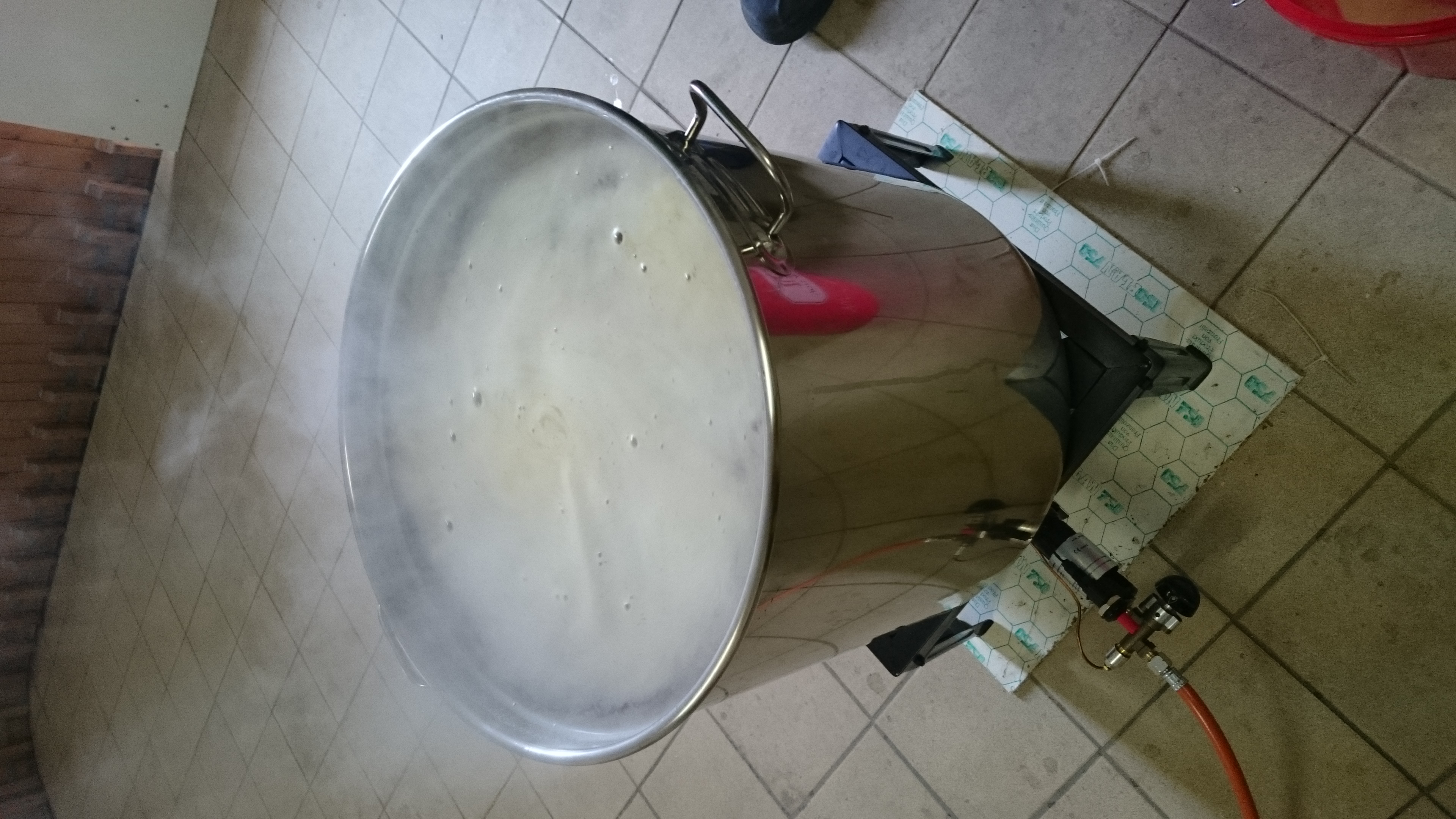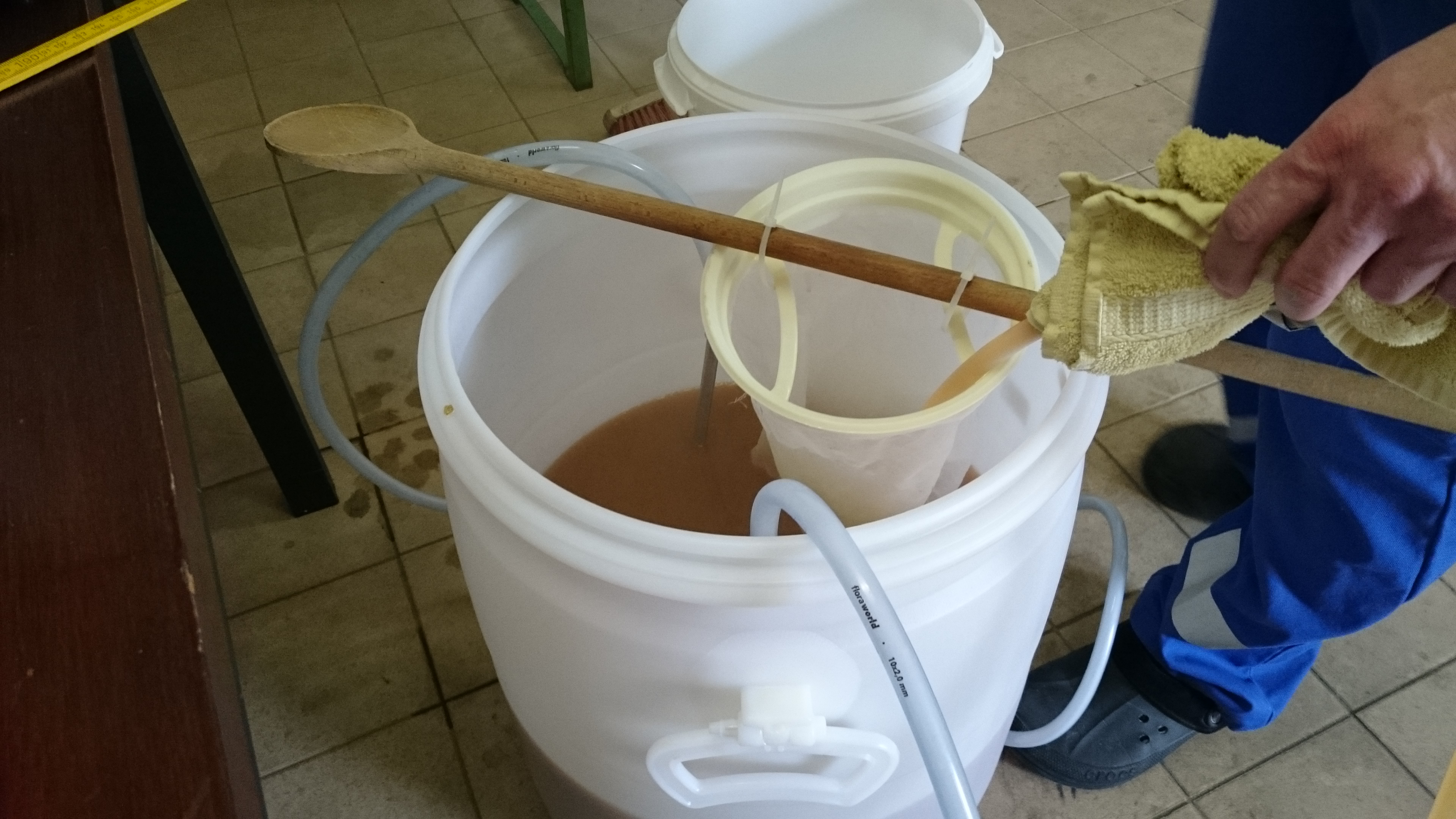 Es passt beinahe alles rein, bis auf einen kleinen Rest. Den geb ich zu, sobald unten genügend Vorderwürze raus ist und oben wieder genug Platz ist. Dabei geht es um ca 7 Liter. Das ist nicht ideal, geht aber einwandrei.