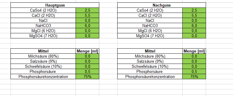 Werden diese Mengen nur dem Hauptguss zugegeben? Beim Nachguss dann reines Osmose-Wasser?