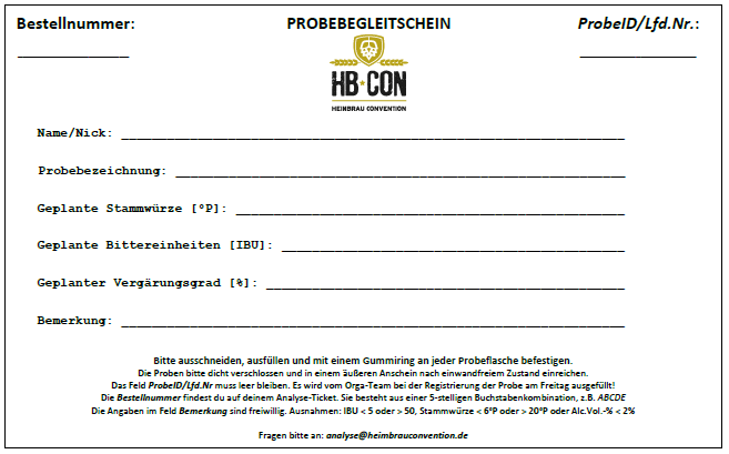 wichtige Infos zu den Abläufen vor Ort, zur Probe, zur Probenahme und zum Probebegleitschein findet ihr jetzt auch auf den offiziellen HBCon-Seiten:
