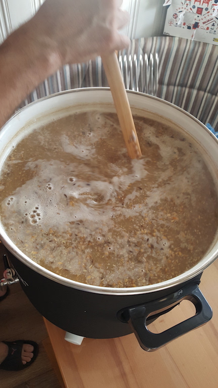 Auch am Vortag erledigt wurde die Malzschrotung mit selbstgebautem Trichter!