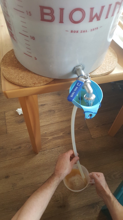 So endlich kann man mal probieren - vor allem da mich der bittere Geschmack die letzten 14 Tage so beschäftigt hat.... und siehe da, es hat schon noch eine gewisse Bitterkeit, aber kein Vergleich mehr zur Würze nach dem Hopfenkochen.
