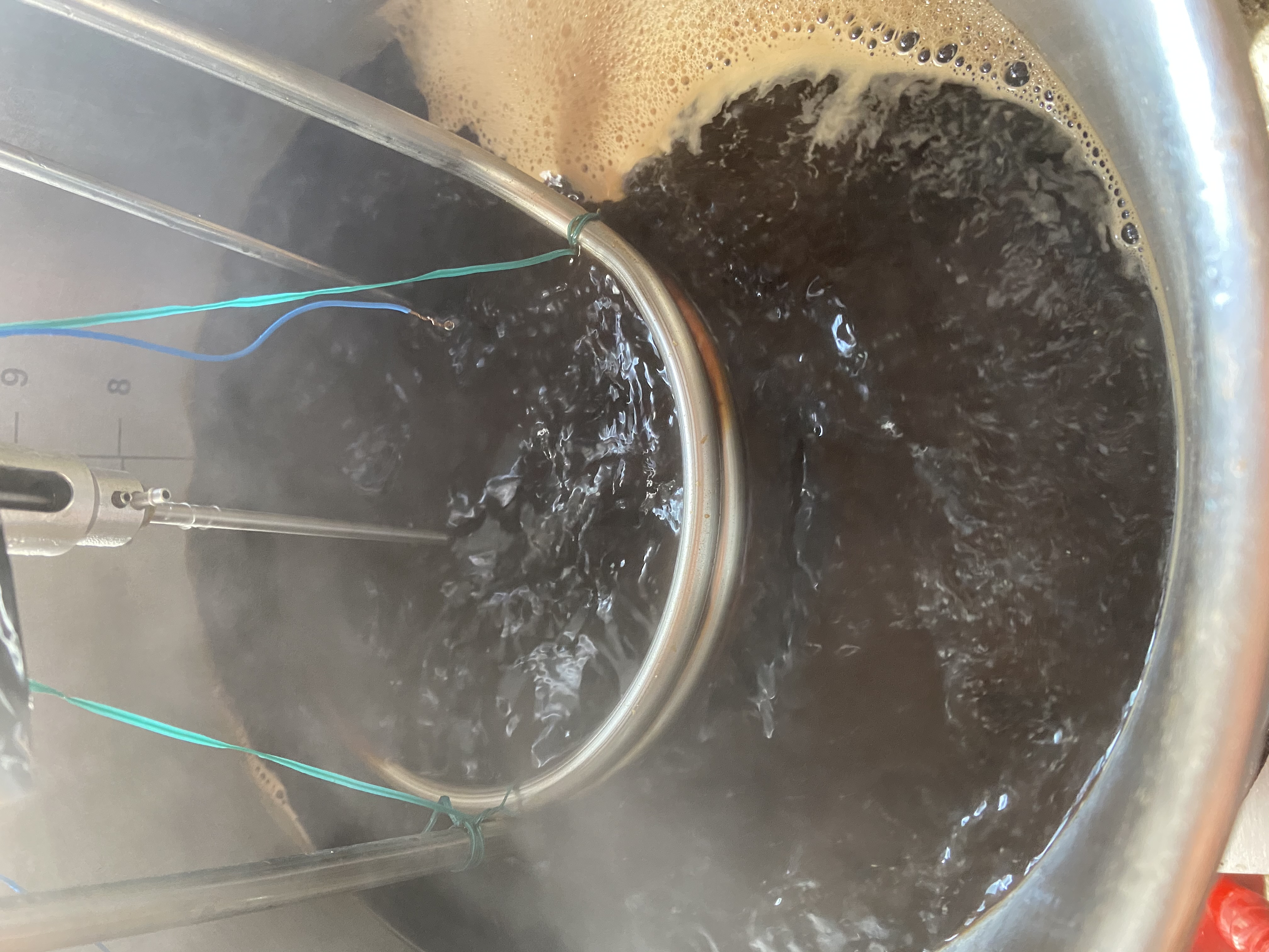 10 Minuten vor Ende kamen noch 2,5 g Irish Moos hinzu und das Rühwerk wieder angeschalten.