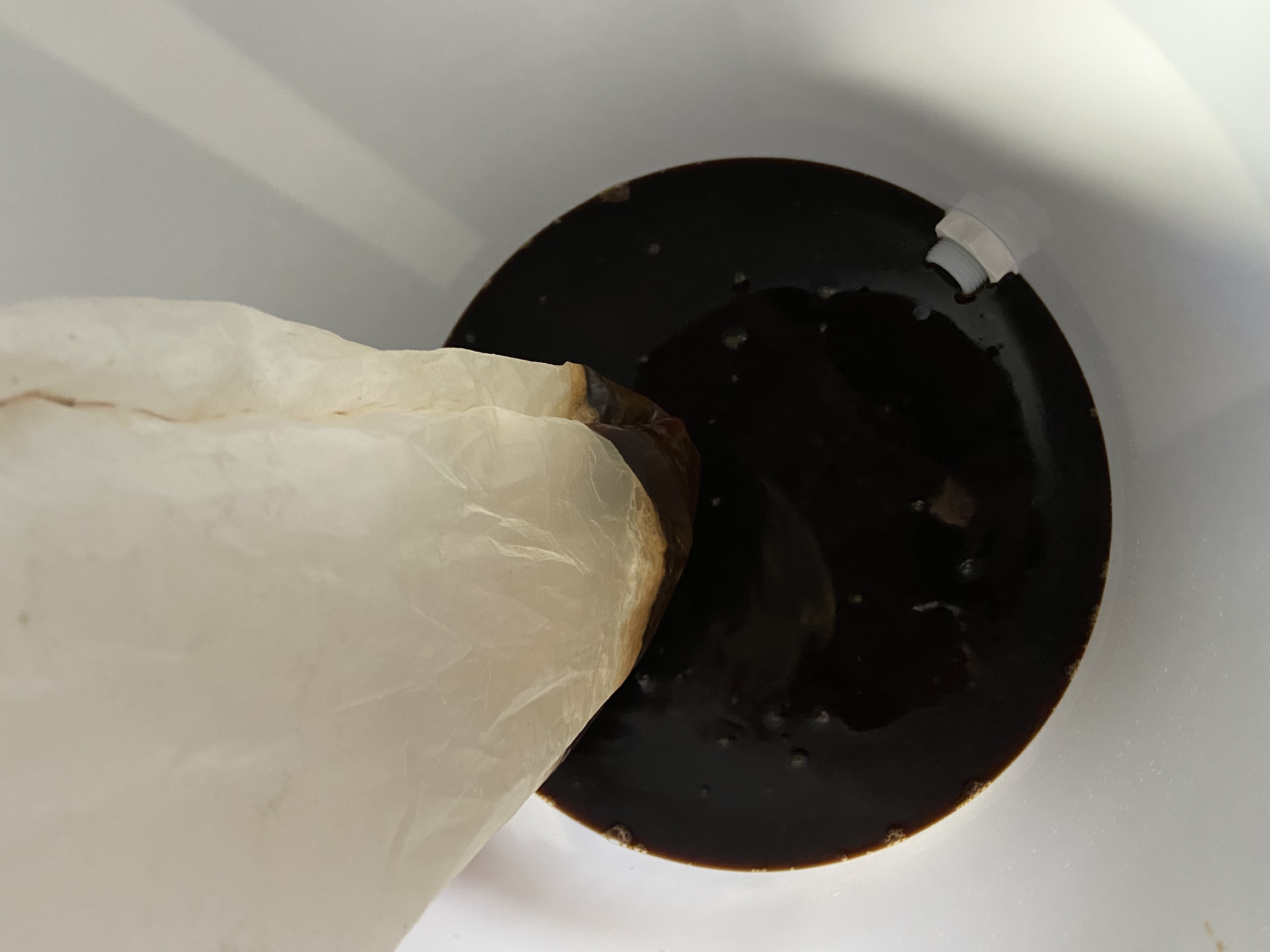 Nach entfernen des Kühlers und des Rühwerks waren es noch 20l mit 15,5 °P was laut dem KBH eine SHA von 69,9 % sind. So gut war meine SHA noch nie, ich denke aber das lag eher an den Haferflocken. DIe Verdampfugszahl war mit 18,5 % recht hoch. Bei den nächsten Suden werde ich eher mit 2 kW beim Kochen fahren und nicht mit 2,7 kW.