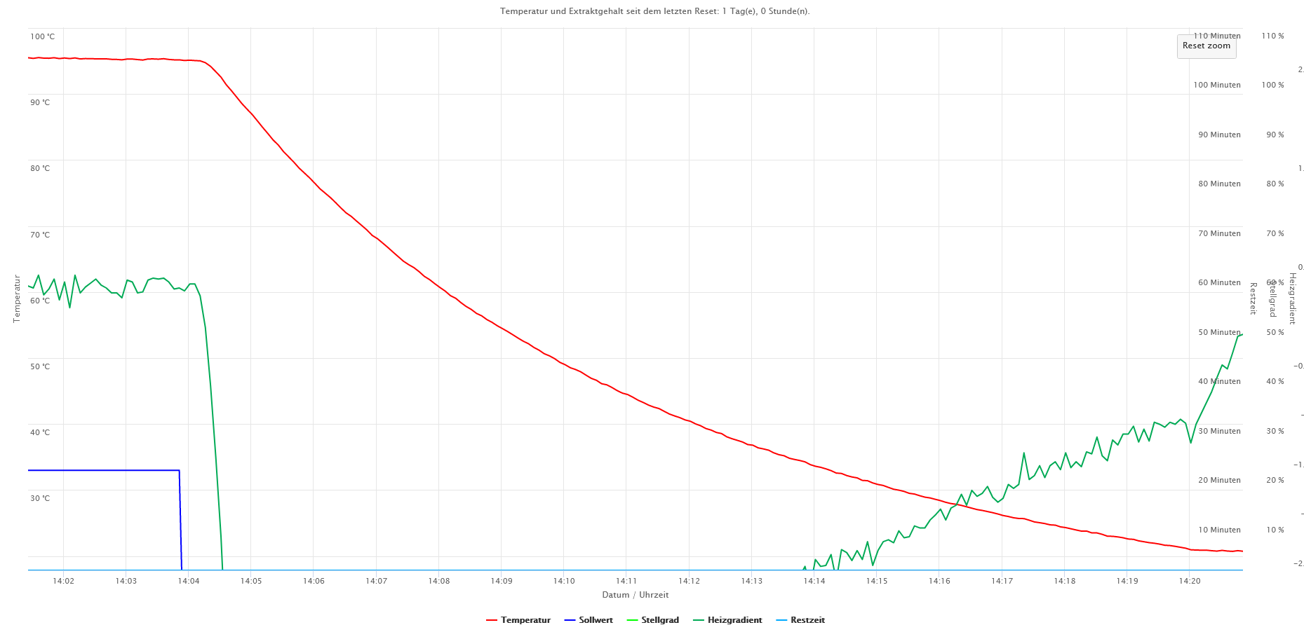 Kurz vor dem Siedepunkt hatte ich dann noch 0,5 °C/min.