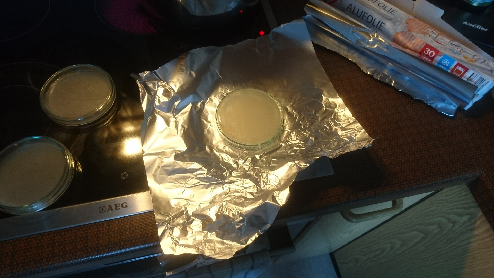Wenn das ganze soweit abgekühlt ist das die Kasse fest ist legen wir den Deckel auf und verpacken das ganze ordentlich in Alufolie. Diese sorgt dafür das der Umzug aus dem Schnellkochtopf oder Autoklaven ohne Kontamination von statten geht.