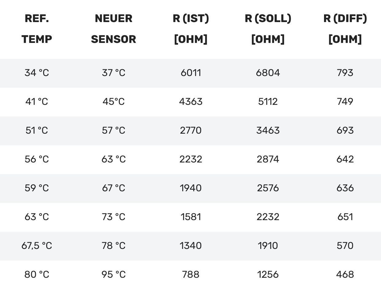 Im ersten Schritt ging es natürlich darum herauszufinden, welcher Sensor verbaut ist. Da im Datenblatt nur "NTC" stand habe ich den Orignalsensor ausgebaut und vermessen: es ist ein 10k NTC mit zwei Drähten. Achtet unbedingt darauf wenn ihr euren Sensor ebenso tauschen wollt - alles Andere kann nach Eurem Geschmack gewählt werden.