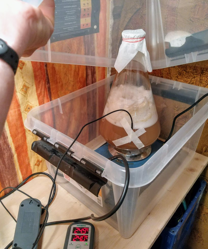 Die eine Test-Flasche vor ein paar Tagen war noch nicht mit der Flaschengärung durch. Typisch anscheinend, wenn man "zu spät" abfüllt mit den stark sedimentierenden Kveiks. Die beiden gestopften Varianten stehen also weiterhin warm; am WE wird wieder probiert....