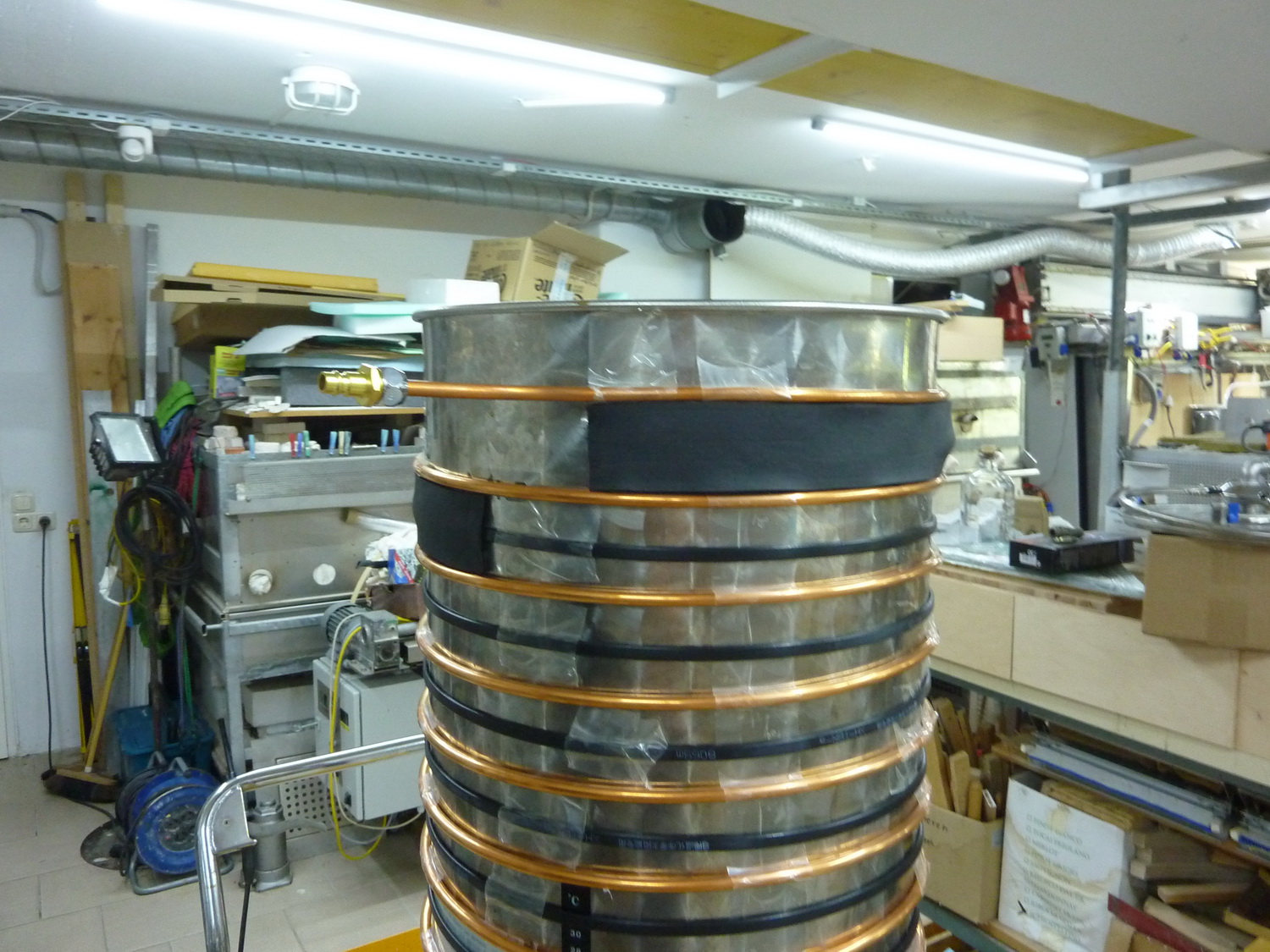 Das kleinere ZKG werde ich demnächst mit einer Heizleitung und einer 10mm Kupferkühlleitung am Mantel versehen, alles isolieren und dann testen da die Reinigung, das Herumwerken mit dem Kühlschlauch + Sensor schon etwas umständlich ist.