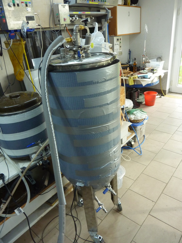 Nachdem das größer ZKG noch belegt ist und ich das heute gebraute Forbidden Wit wo vergären muss war ich gezwungen das Vorhaben Mantelkühlung/Heizung bein 60 L ZKG noch heute umzusetzen.