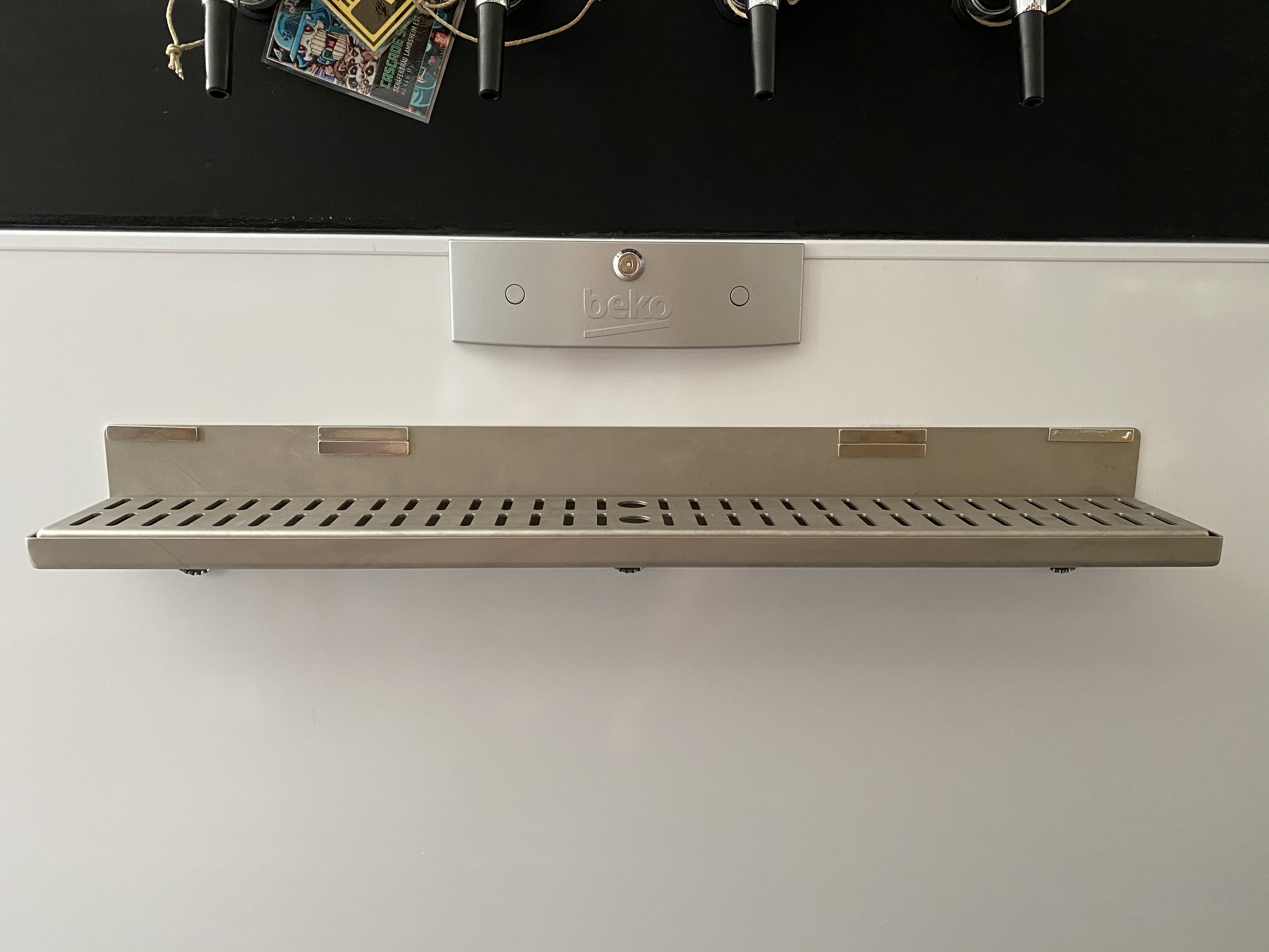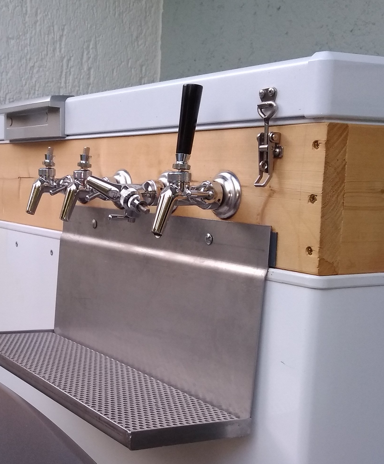 Wie gesagt, ich hab den Keezer mit dem Tropfblech gebraucht gekauft. Das Tropfblech wurde von einem Bekannten des Vorbesitzers angefertigt.