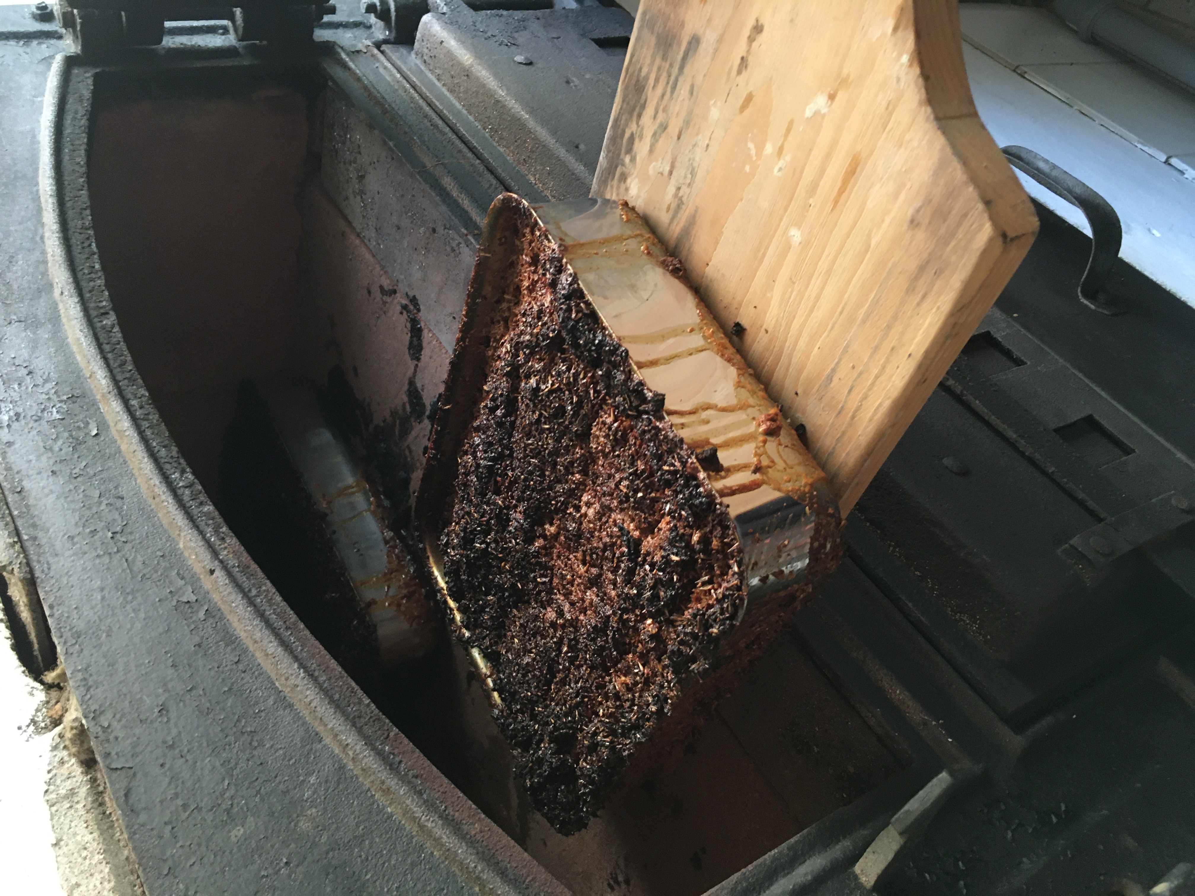 Dann wurde der Ofen ausgeräumt, die Maische in alle verfügbaren feuerfesten Gefäße eingefüllt und ins Warme verbracht.