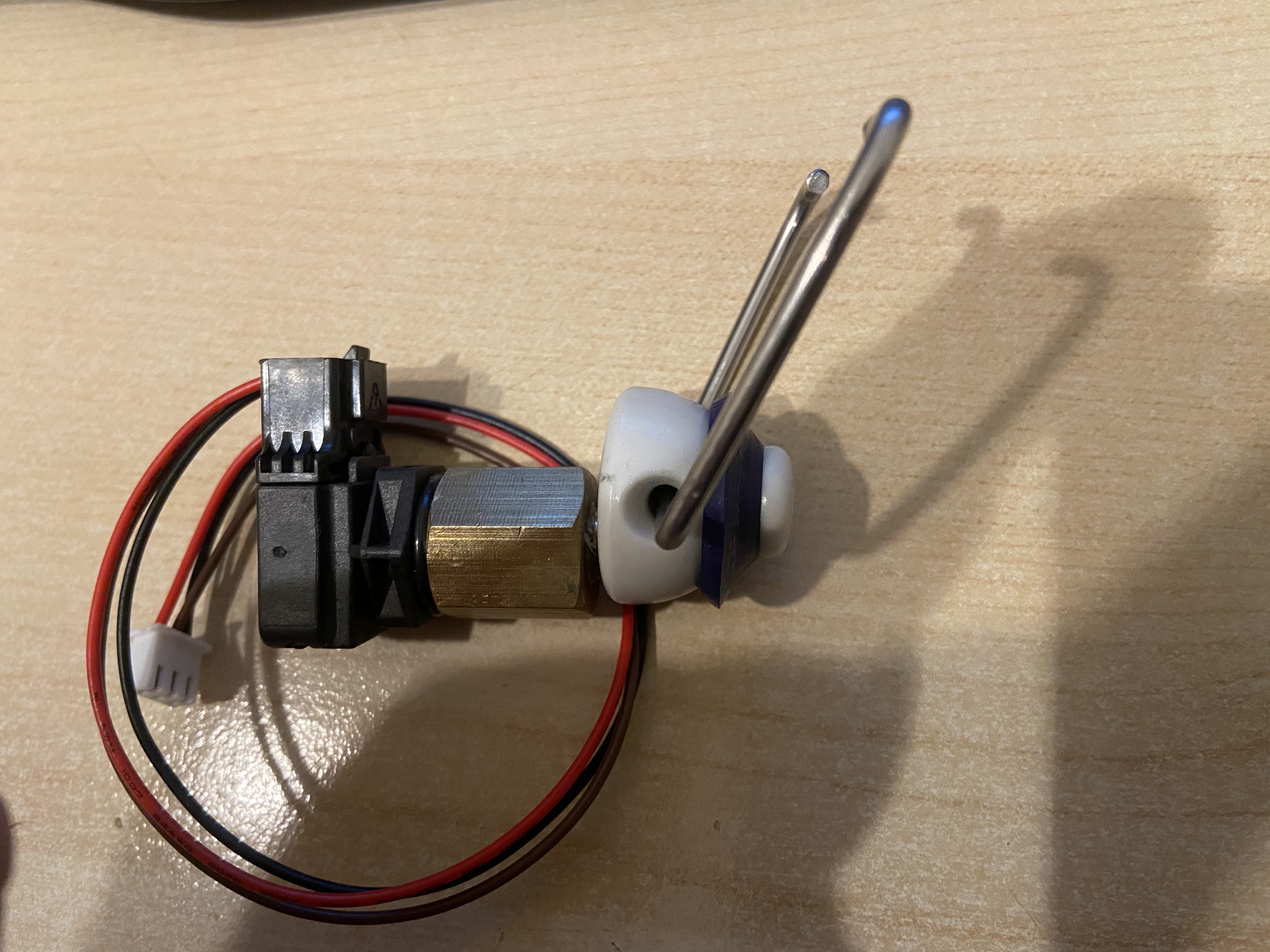 Einfach von unten schräg mit einem 2,5mm Bohrer angebohrt und von oben dann ein 8,4mm Kernloch für 1/8" Gewinde gerade am Rand gebohrt, sodass beide Bohrungen sich im Stopfen Treffen. Versuch mit Druckluft Pistole hat das Manometer auf 4 bar ausschlagen lassen