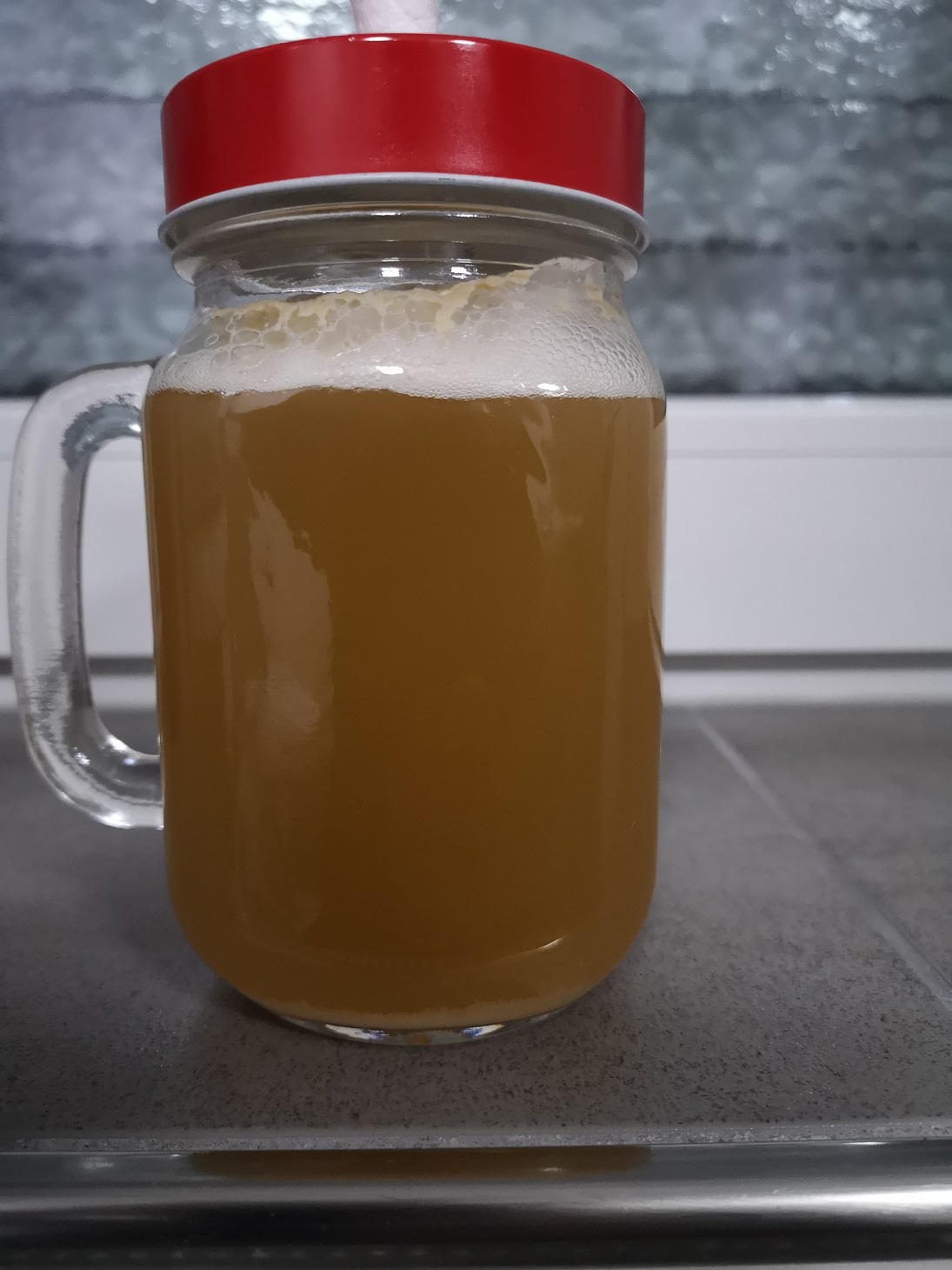 Dann bemerkte ich aber den typischen braunen Rand am Gärbehälter ein paar Zentimeter oberhalb den Flüssugkeitsstandes.