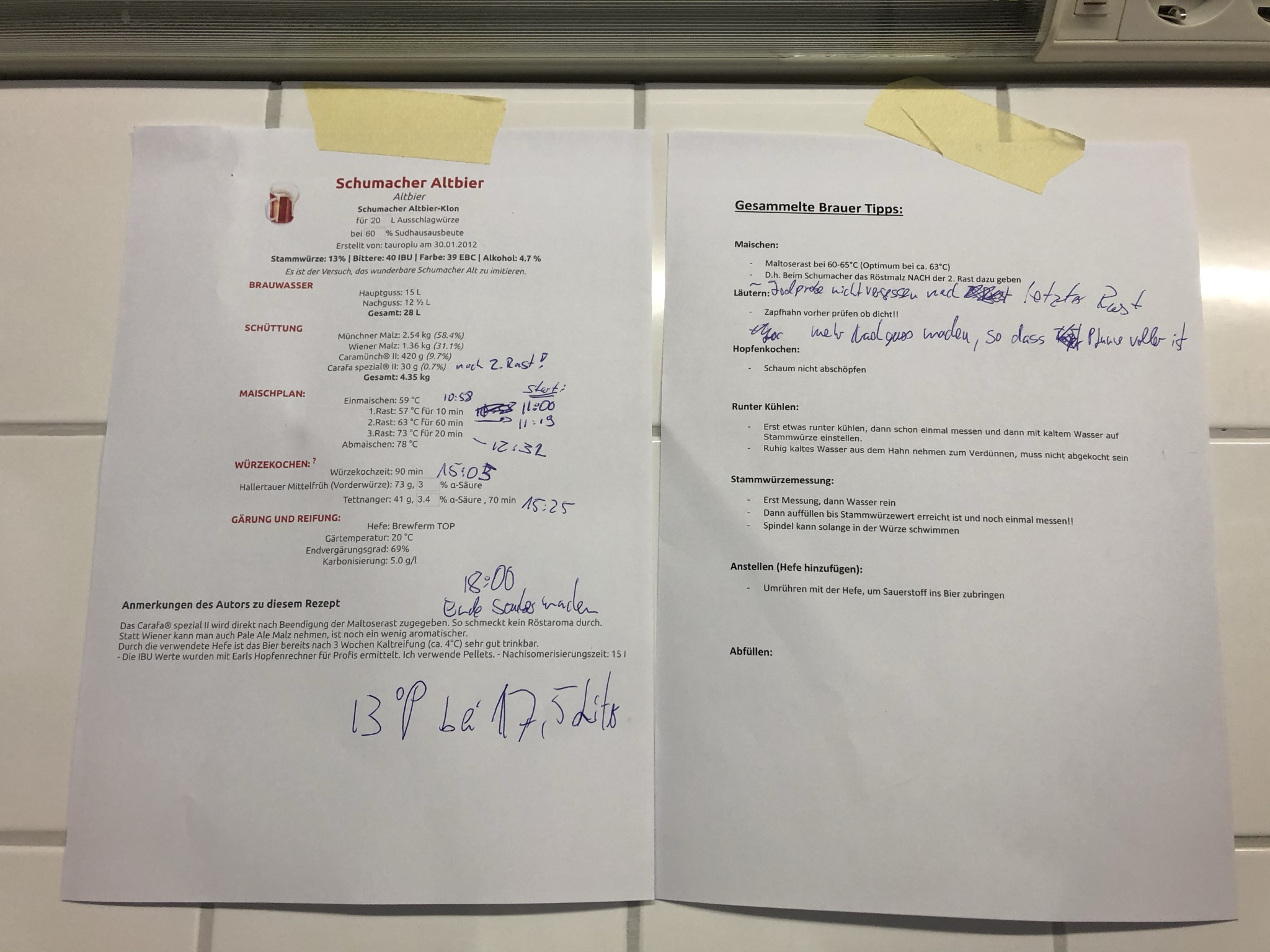Hier noch einmal das Rezept inkl. ein paar Daten vom Brautag, sowie daneben meine gesammelten Erfahrungen vom ersten mal, so dass ich hier direkt neue aufschreiben konnte: