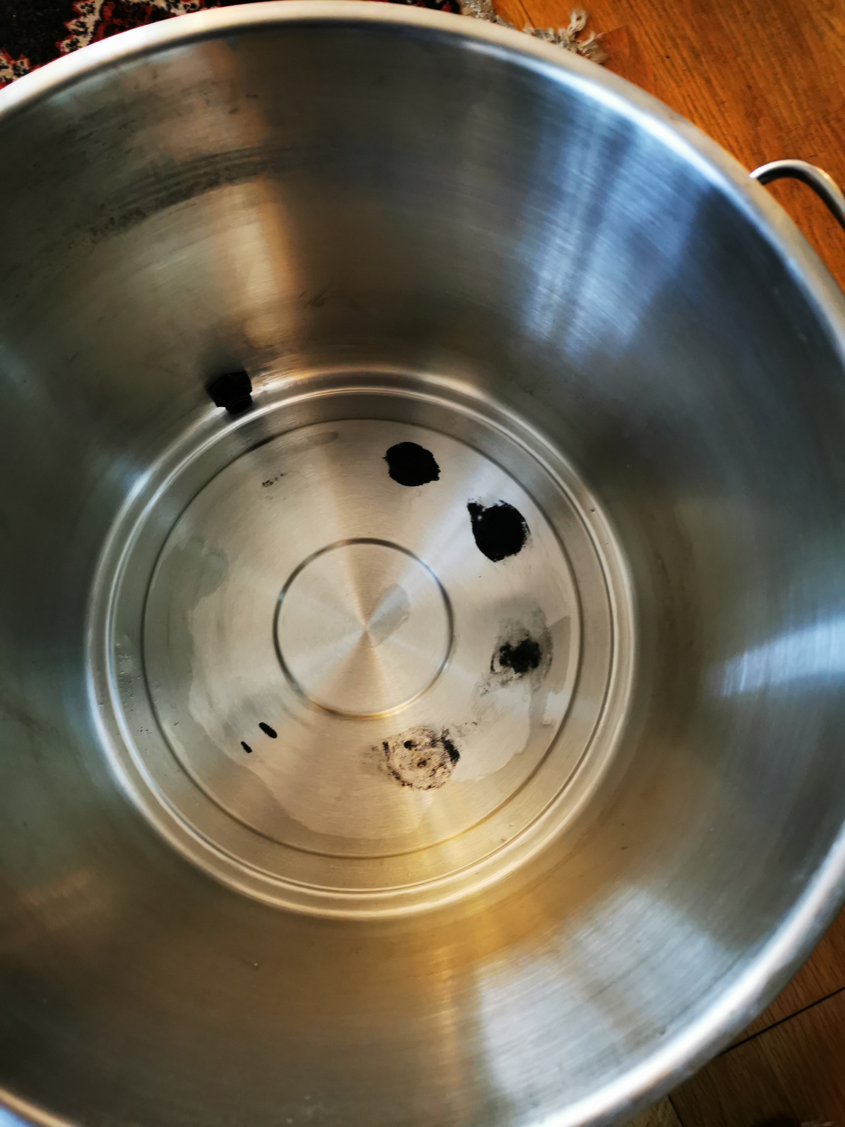 Schlimmer noch, am Boden vom (Edelstahl) einkocher bemerkte ich brand Flecken, 2 davon sind anscheinend in die Struktur eingebrannt