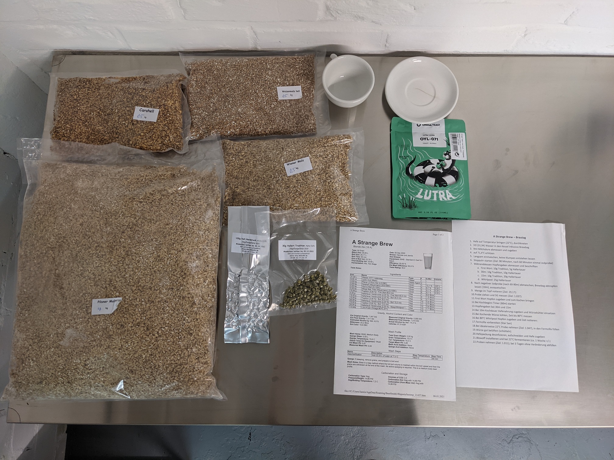 Gebraut wurde ein Bier, das etwas schwer zu kategorisieren ist. Das Rezept habe ich in diesem Post geteilt und entwickelt. Es soll ein Bier mit einem angenehmen Hopfenaroma werden, das nicht unbedingt in die fruchtige Richtung geht. Aufgrund der Einfachheit sollte es obergärig sein - geschmacklich aber eher clean werden. Daher fiel die Wahl auf die Lutra Kveik als Hefe und durch ein tolles Pils, das mich inspiriert hat, sollte mit Tradition und Hersbrucker gehopft werden.