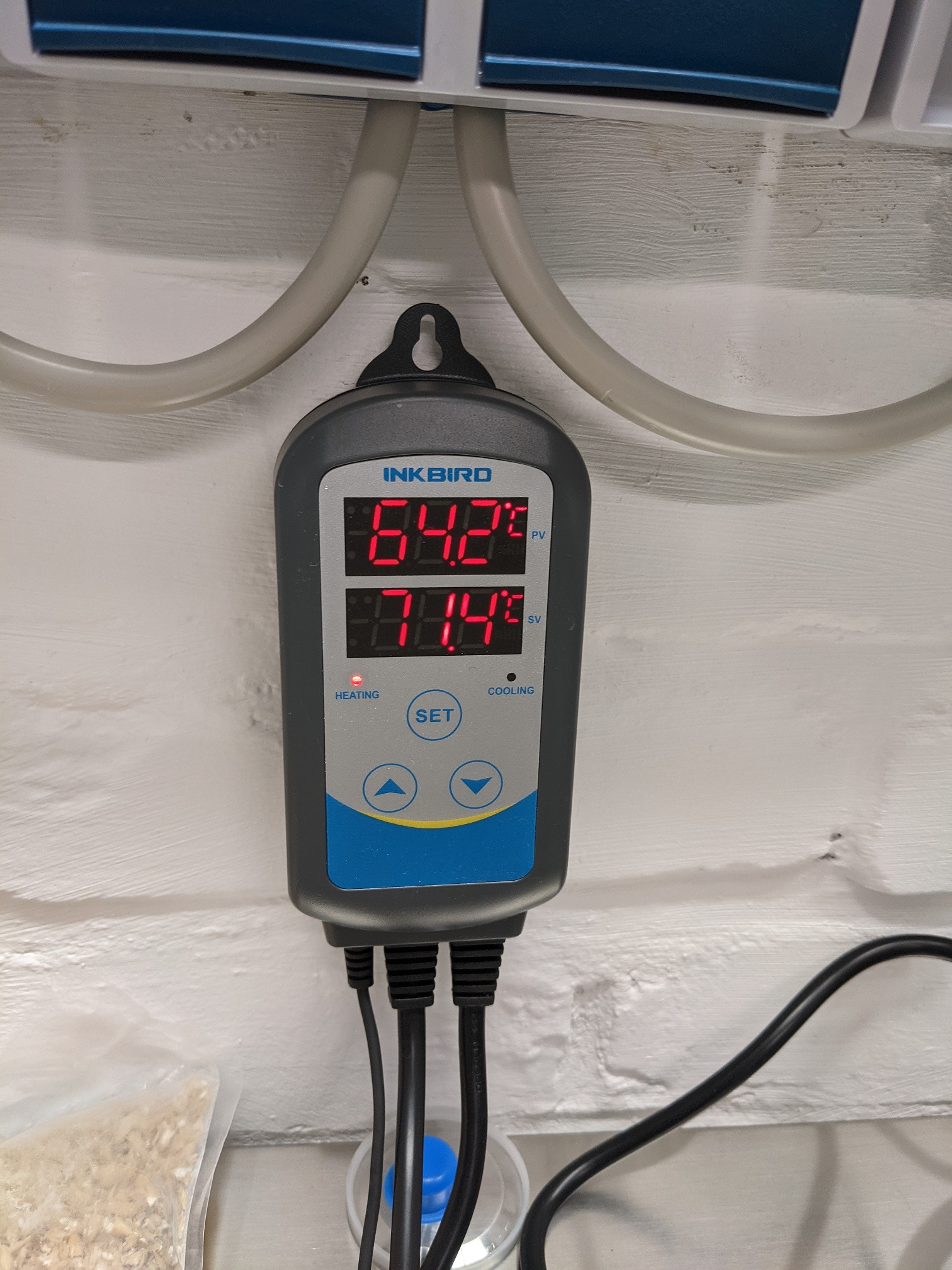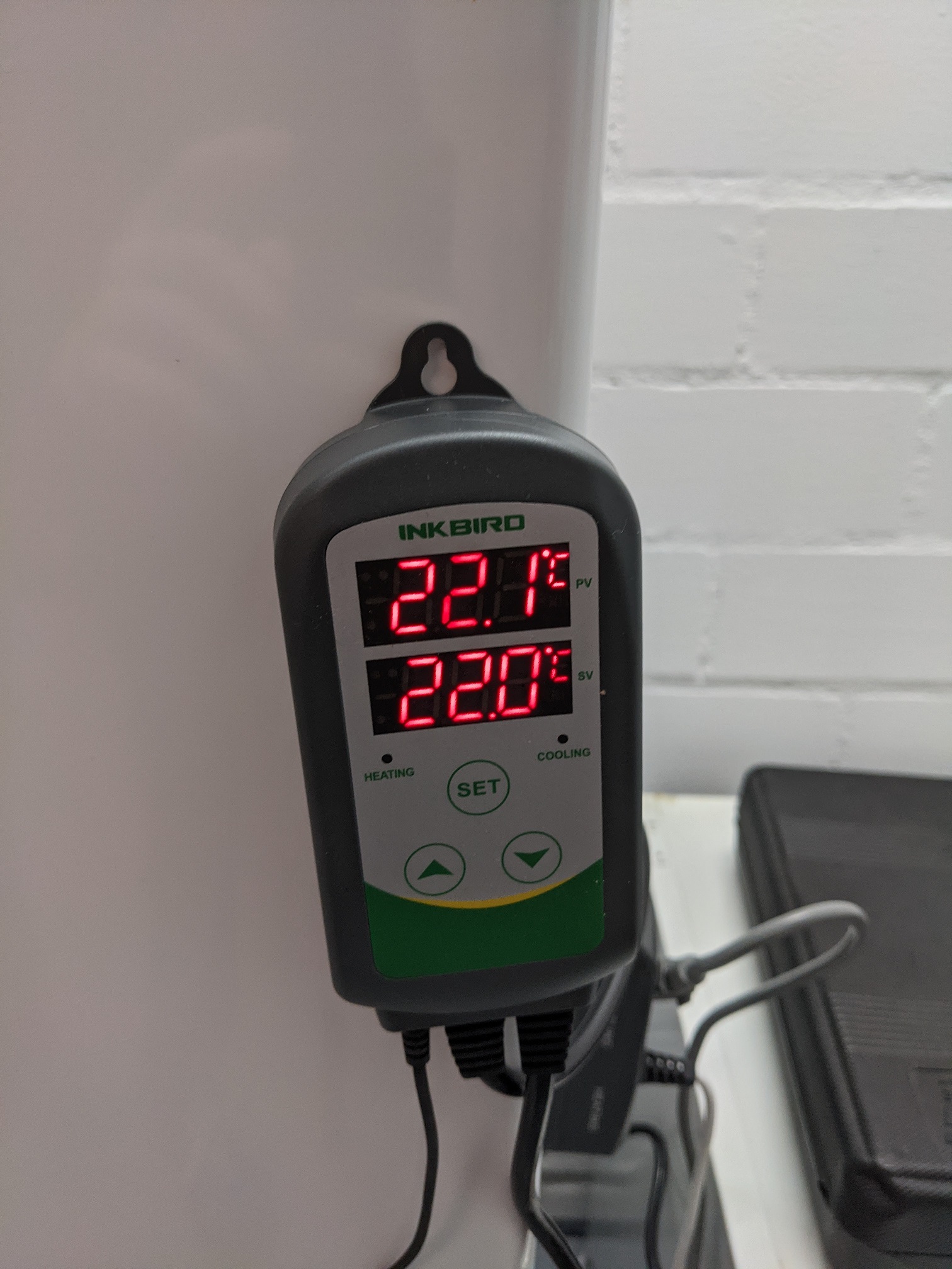 Als erstes durfte es sich die Hefe im Gärschrank unter dem Terrarienheizkabel bequem machen und sich entspannt auf Temperatur bringen lassen (22°C).