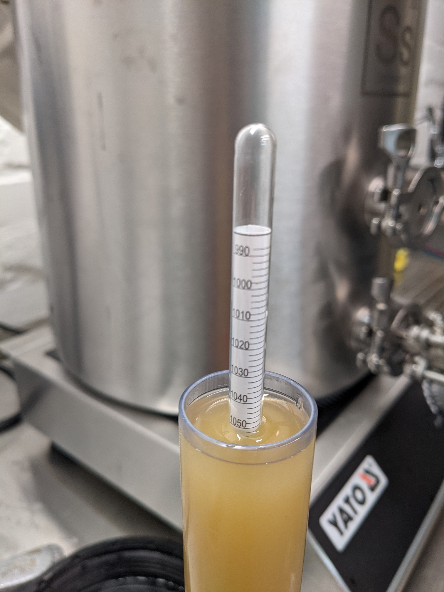 Die Preboil-gravity habe ich übertroffen. Bei der geschätzten efficiency sollten es 1.037 sein, es waren aber etwa 1.040.