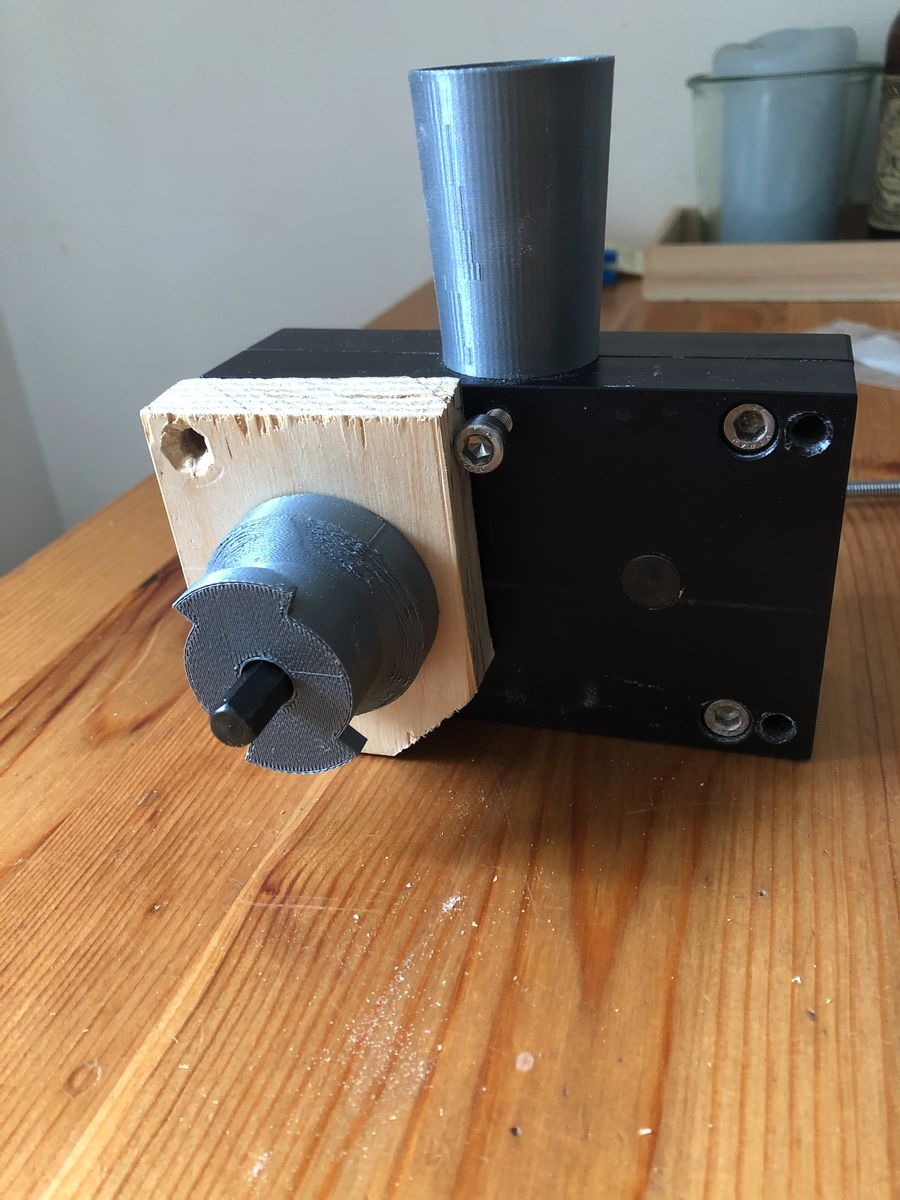 Das Holzteil sollte letztendlich von dem Teil von der Gearbox ersetzt werden.