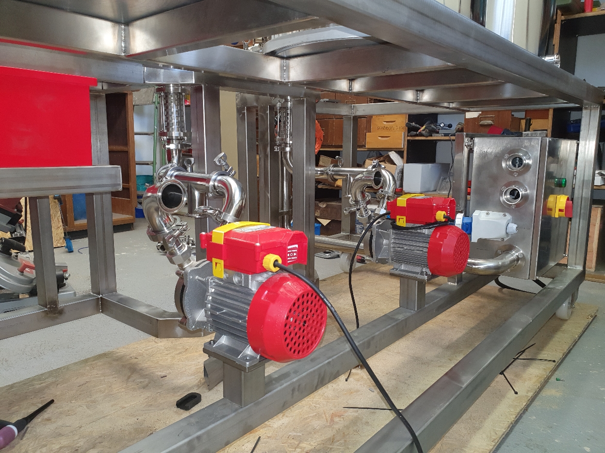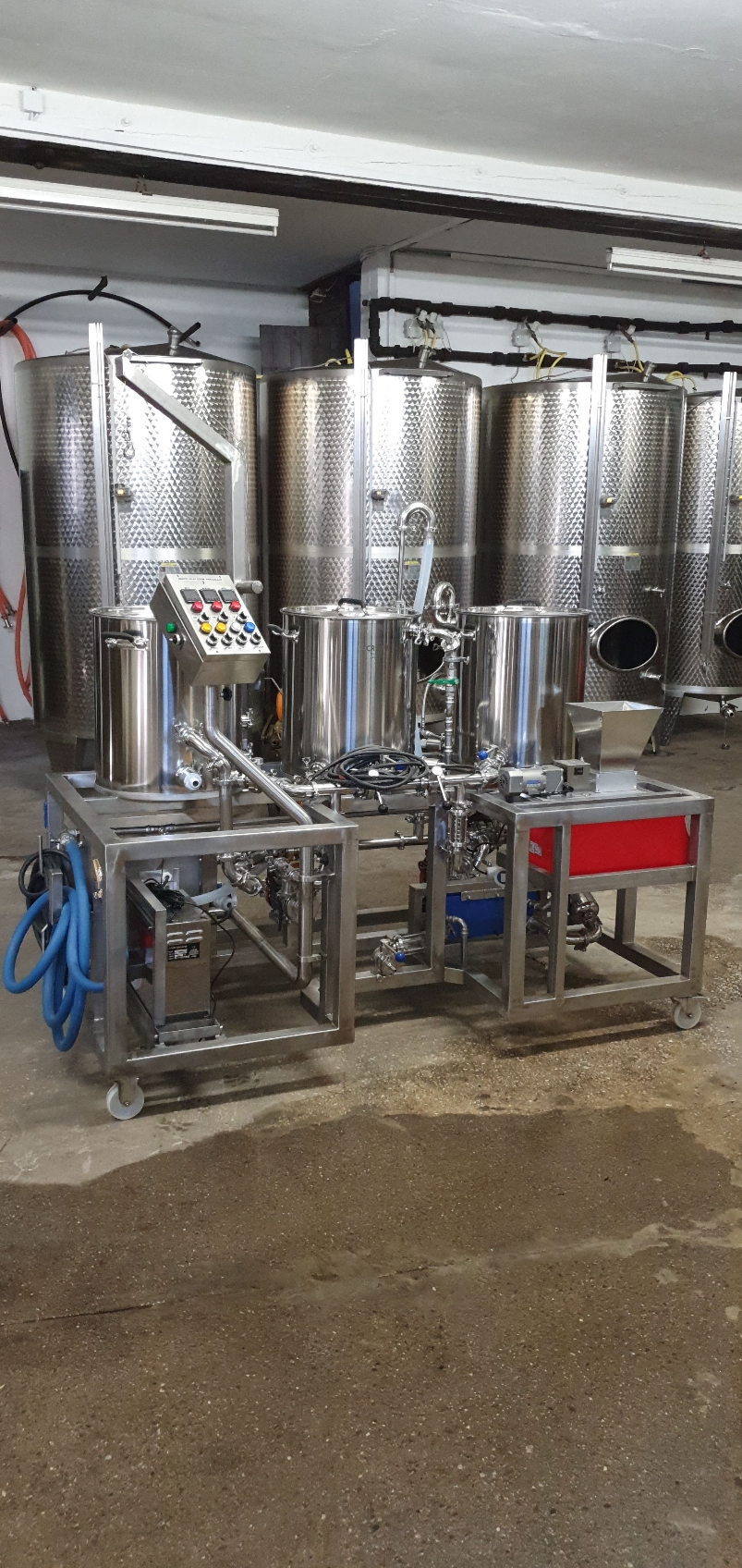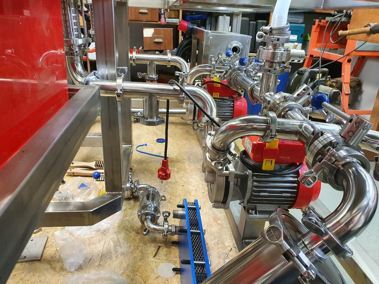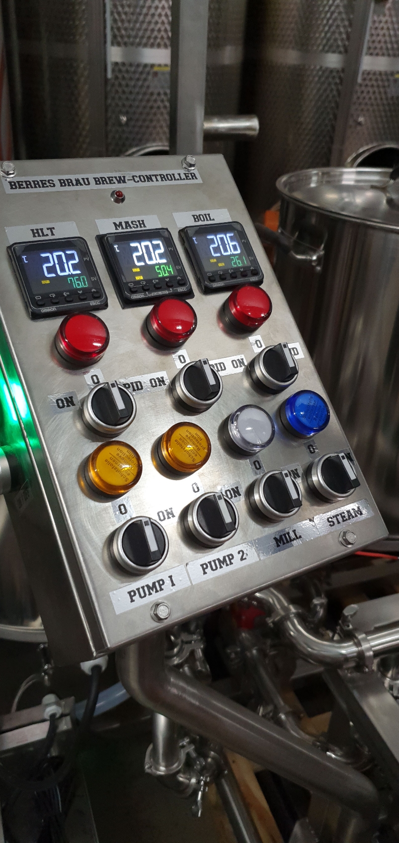 vielen Dank für die Blumen... also wie man aus den Tanks im Hintergrund richtig erkennen kann bin ich nicht ganz branchenfremd... zumindest was die Gärung angeht ;-)). Wir haben ein Weingut, die Brauanlage ist also wirklich reines Hobby! Tatsächlich habe ich noch nie vorher Edelstahl geschweißt und mich komplett da reinfuchsen müssen, ich habe mich von einer SS-Brewtech Anlage insprieren lassen und dann auf ebay angefangen Material wie Steuerungen und TriClamp Verschraubungen zu suchen...
