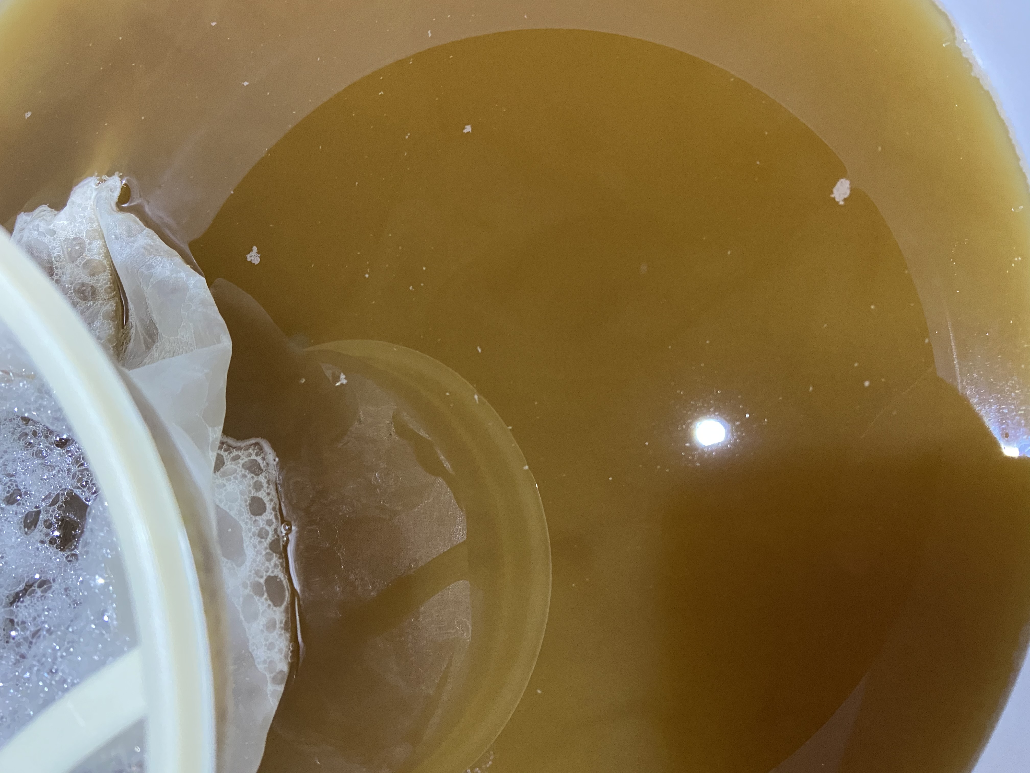 Bis auf dem Trub am Anfang ist der Sud sehr klar in den Monofilamentfilter gelaufen.