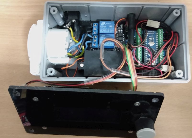 Ich Laufe des Projektes habe ich mich allerdings entschieden das ganze zu Vereinfachen sowie einen Lüfter und einen Hauptschalter zu verbauen. Auch ein 5V Netzteil für die Stromversorgung des Nano ist dazu gekommen: