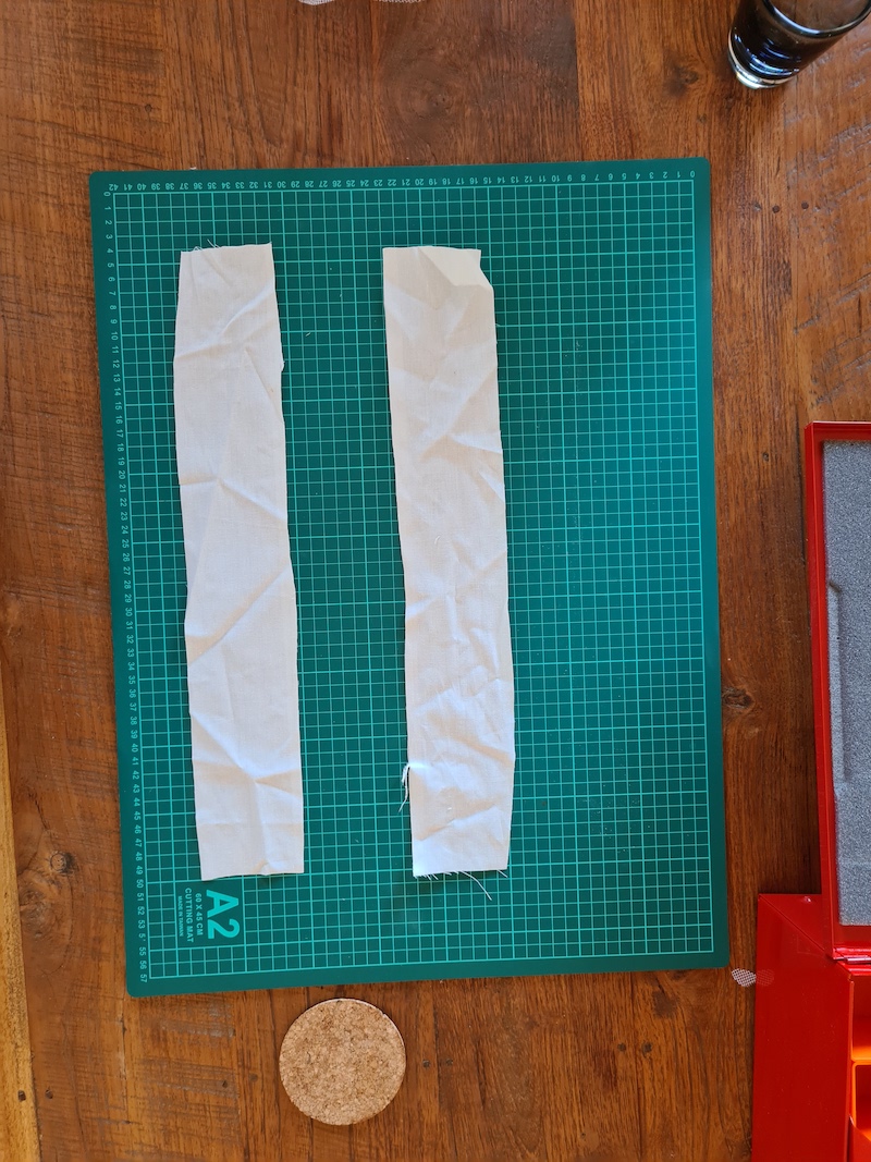 Dann zweimal in der Mitte gefaltet und die Grundflächen-Stücke die Baumwoll-Bahn eingenäht: