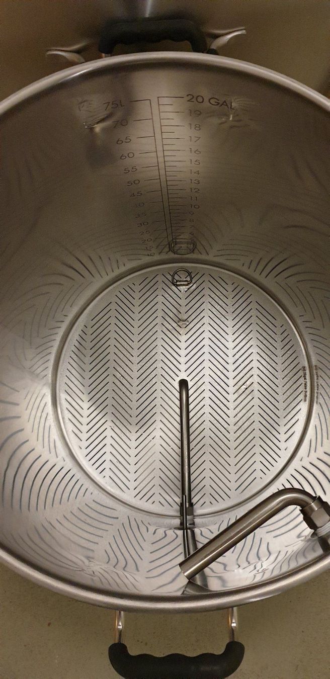 Mit dabei war das Maischesieb sowie das Verlängerungsrohr für den Hahn so das im Zentrum vom Sieb abgesogen wird.
