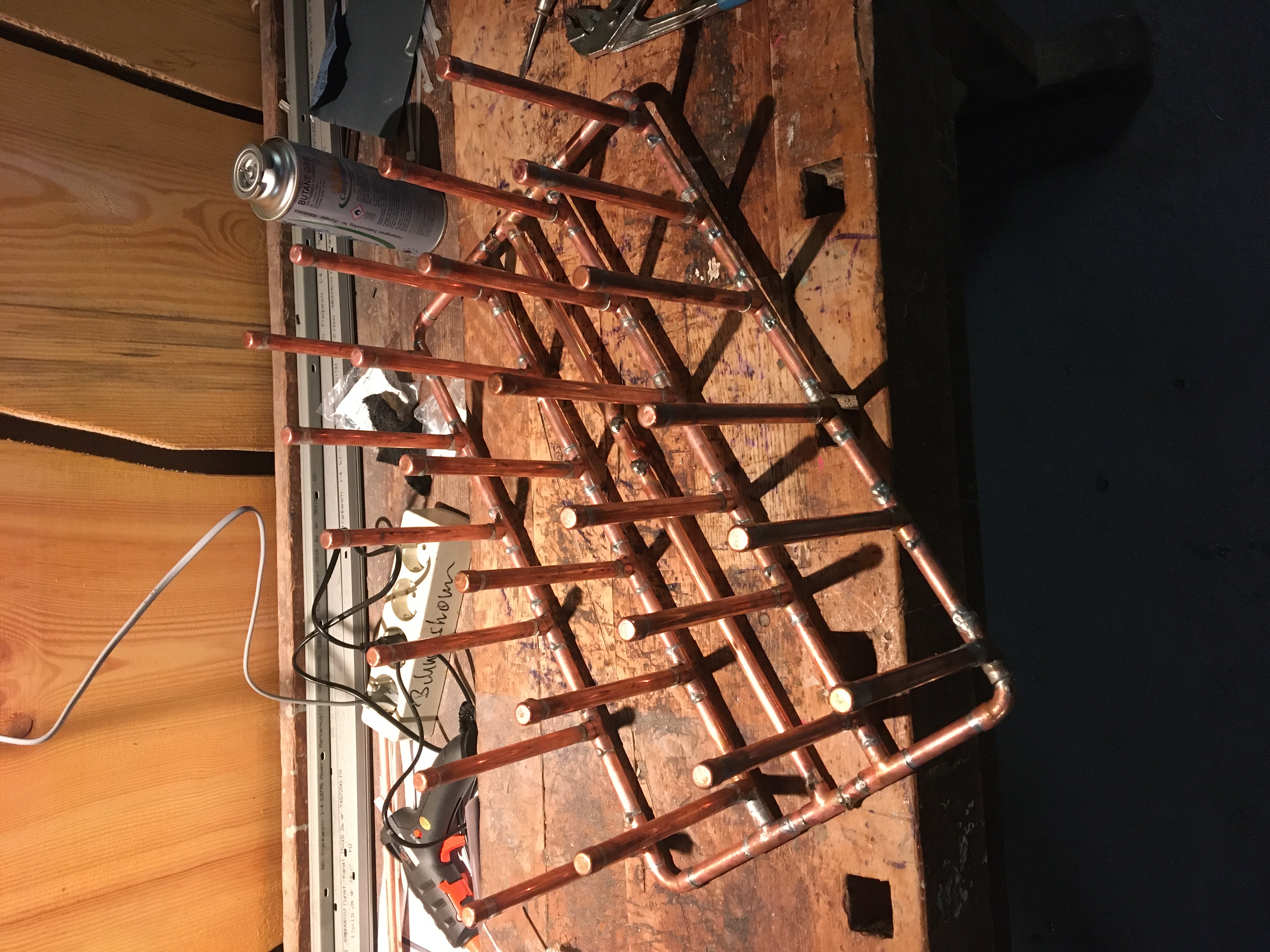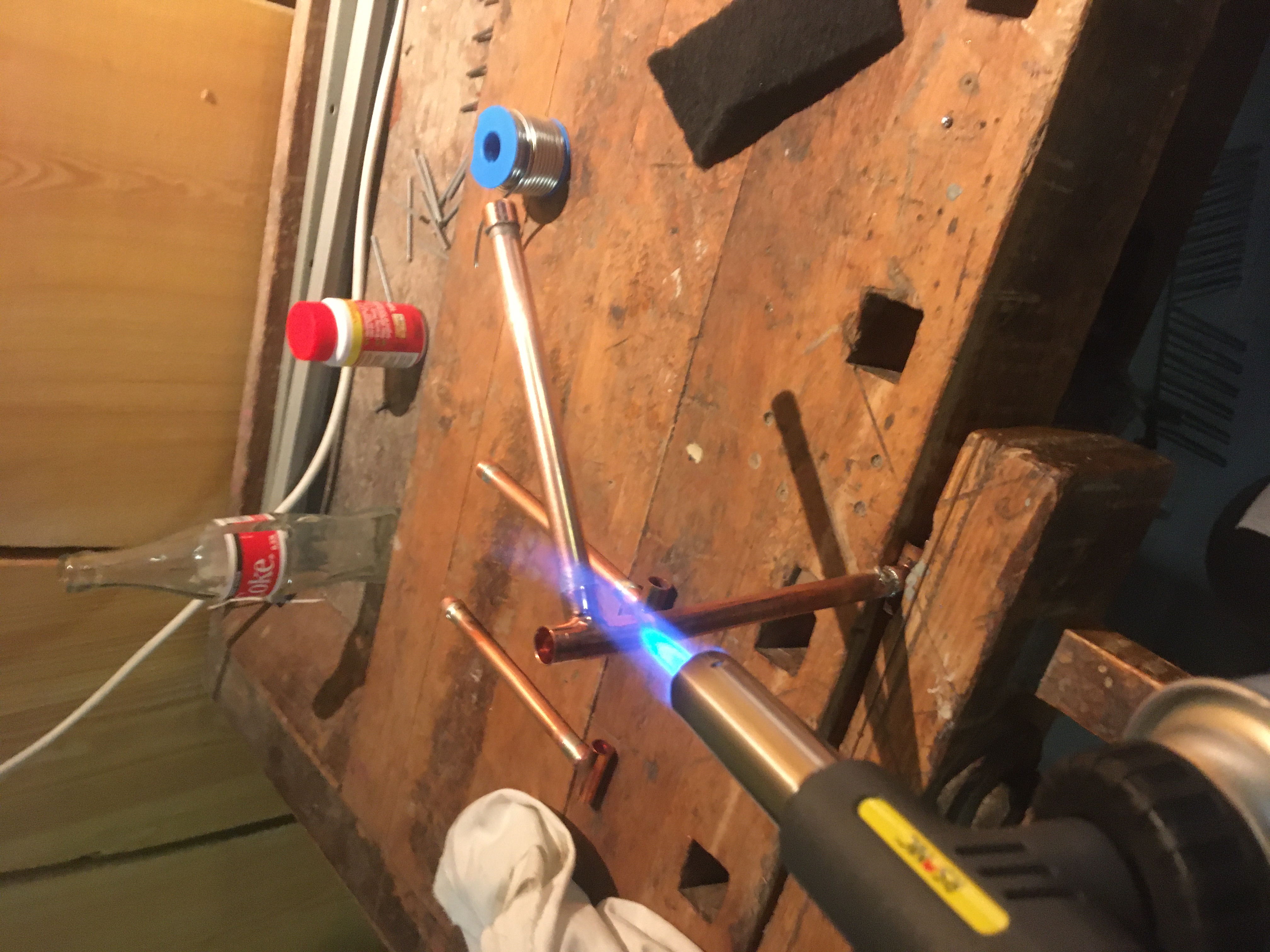 Zwei Stellen war noch undicht konnten aber rasch gefixxed werden. Nach dem Drucktest mit Wasser waren die Rohre natürlich nass von innen und es hat eine halbe Ewigkeit gedauert die undichten Stellen mit dem Brenner auf Temperatur zu bringen. Ein Drucktest mit Pressluft ist wahrscheinlich besser geeignet.