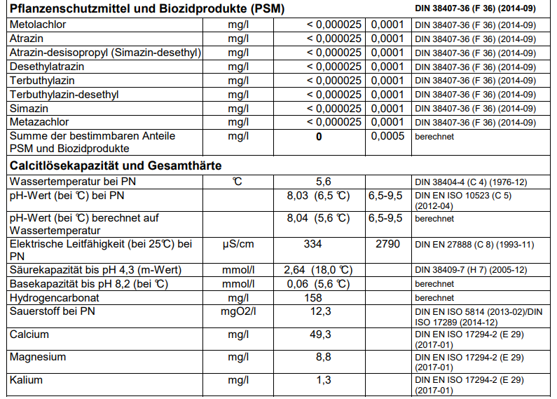 Mit den Werten aus deinem Bild kann ein Brauer nichts anfangen. Es fehlen Angaben zu HCO3, Calcium, Magnesium, Sulfat, Chlorid und Natrium. Dein Trinkwasserversorger kann und muss das liefern.