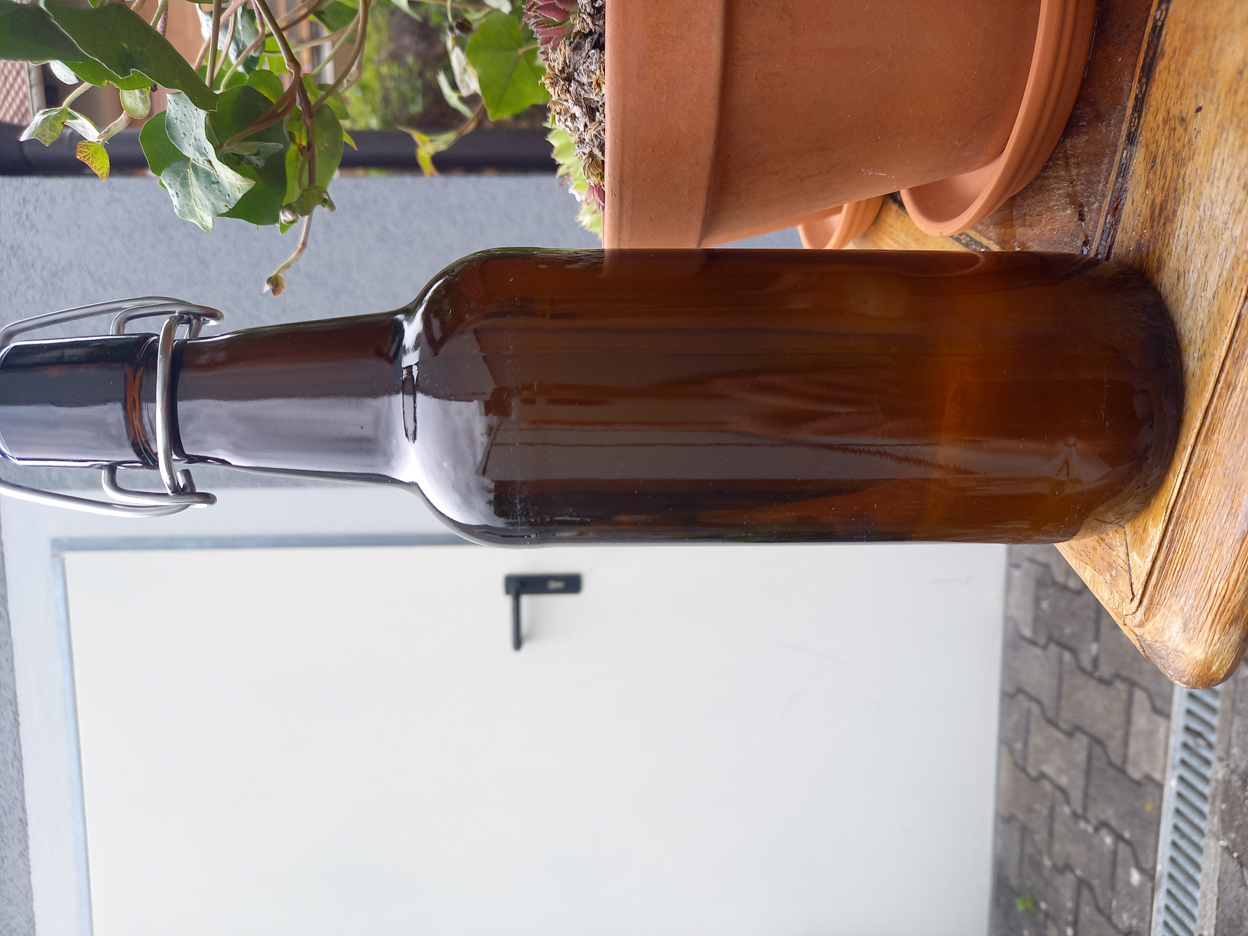 Nach der Nachgärung gut kalt lagern, sozusagen Cold Crash in der Flasche und dann ganz vorsichtig einschenken.